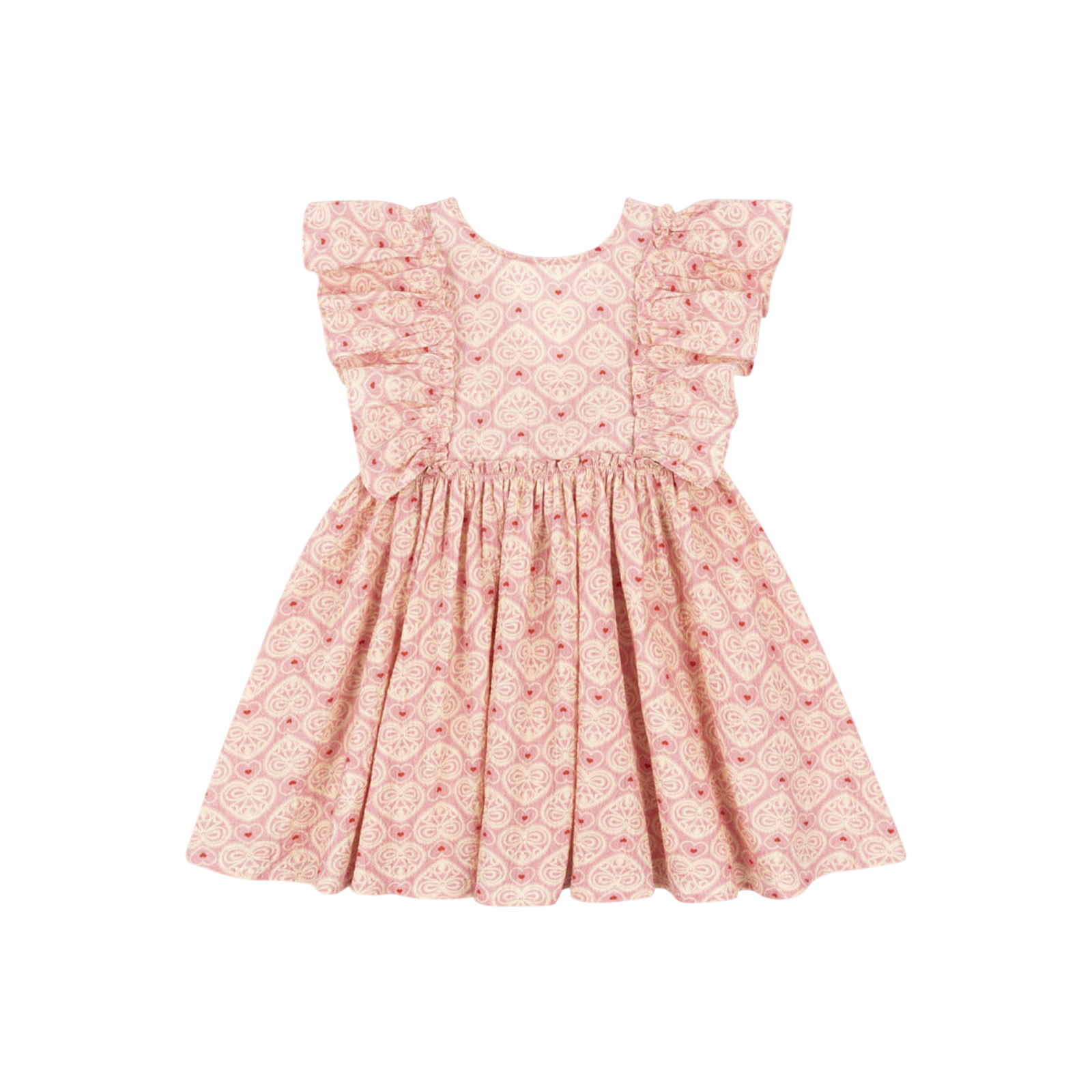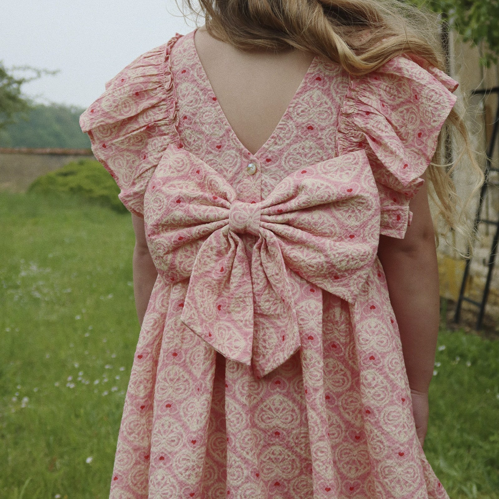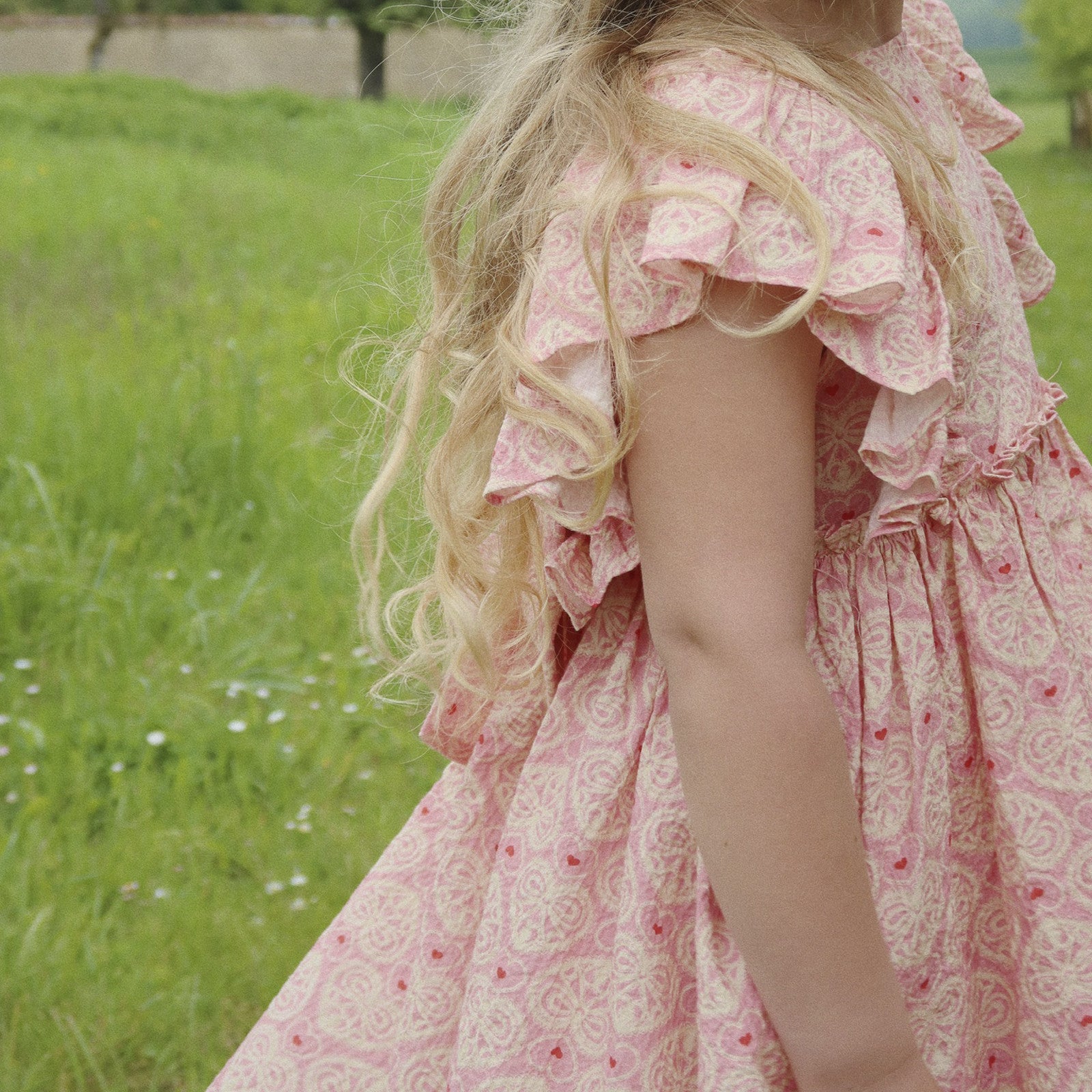 The Ava Bow Lacy Pink dress by Konges Sløjd is an enchanting girls' dress for special occasions or everyday wear. The dress impresses with its delicate lacy pink color and the playful bow appliqué, which gives it an elegant touch. The loose cut makes it very comfortable to wear, while the delicate ruffles on the sleeves and hem make the dress particularly sweet and feminine. Made from soft cotton, it is very comfortable for your child to wear on both warm and cooler days. A perfect frill dress for unforgettable moments. Also available as a two-piece with blouse and shorts.