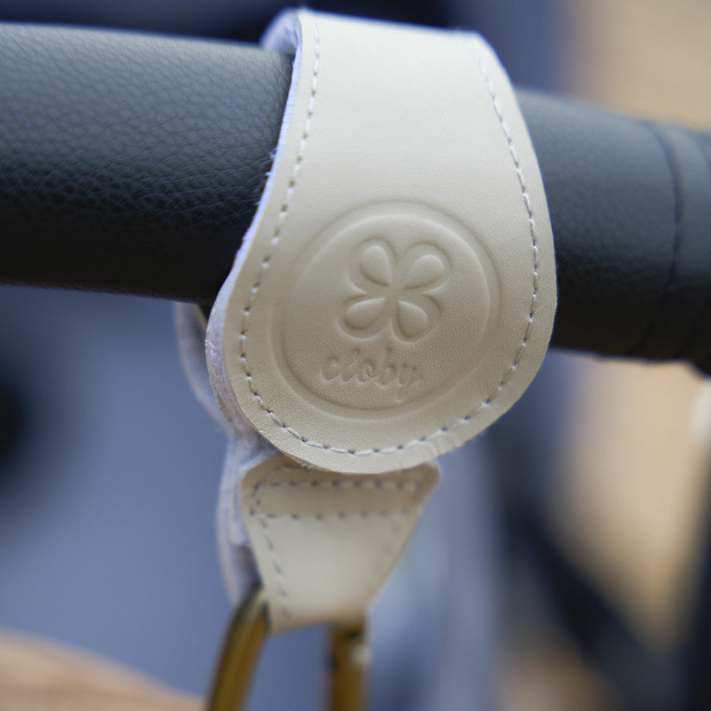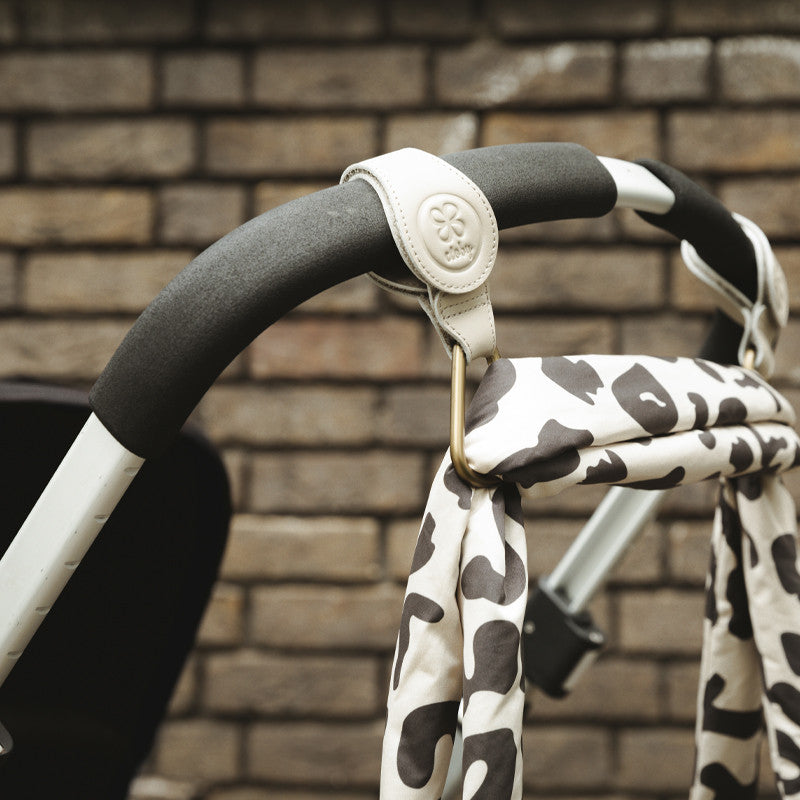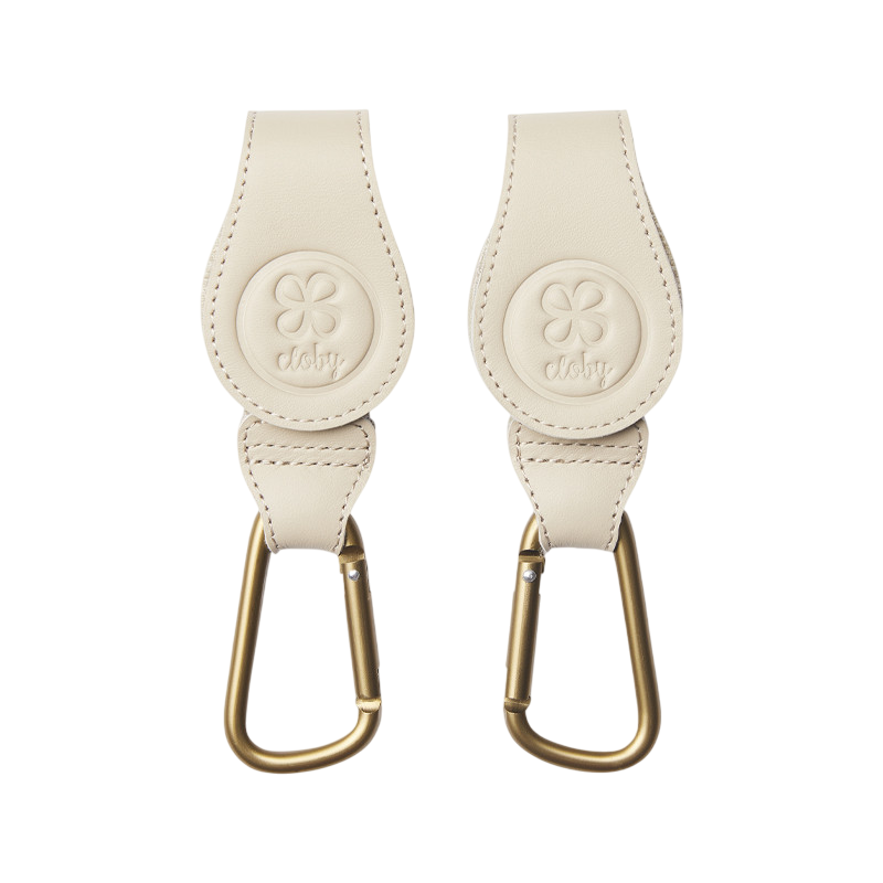 The Cloby baby carriage hooks in beige are a stylish and practical solution for creating more order and comfort on the go. Made from high-quality, robust leather, they are not only durable, but also have an elegant design that blends harmoniously into any look. With the practical snap hook, bags, shopping or blankets can be securely and conveniently attached to the baby carriage, leaving your hands free and keeping everything important within easy reach.