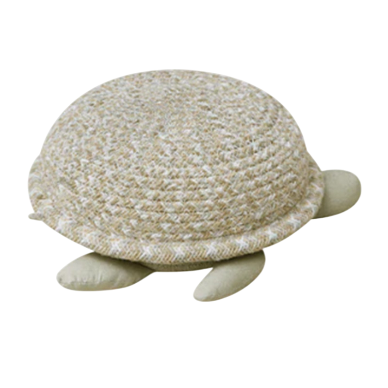 Help the baby turtle reach the shore of the ocean! The hand-woven baby turtle basket is made of woven strings from recycled PET bottles mixed with our cotton dyes and has a small head and paws made of olive green organic cotton. Open the lid and hide your little treasures!