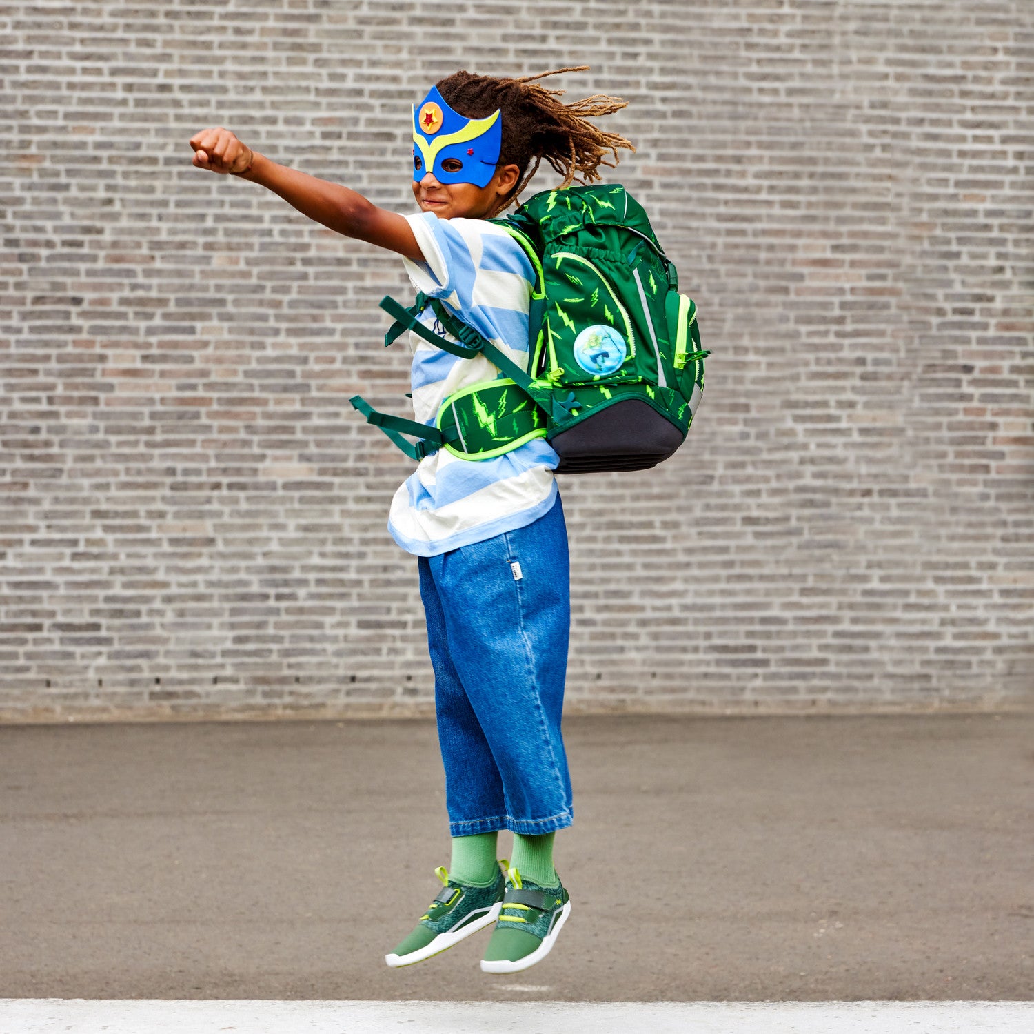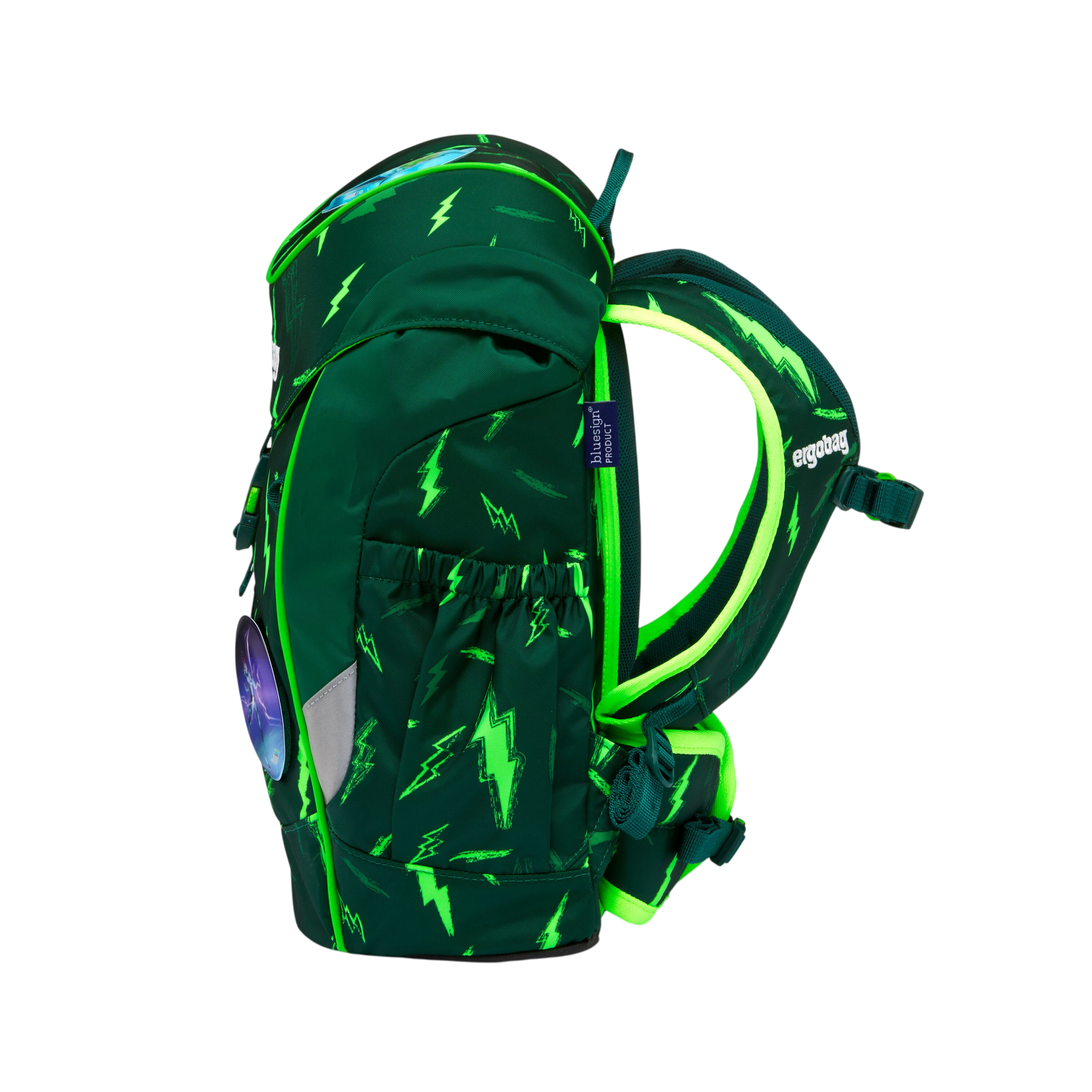 The ergobag Mini Bärtastisch backpack is like a flash of pure energy. Dark green meets bright flashes of lightning and calls for discovery tours in all weathers. Ergonomically shaped and particularly lightweight, it sits perfectly on small shoulders and makes carrying it a breeze. Made from sustainable materials, it supports little heroes on their daily adventures.