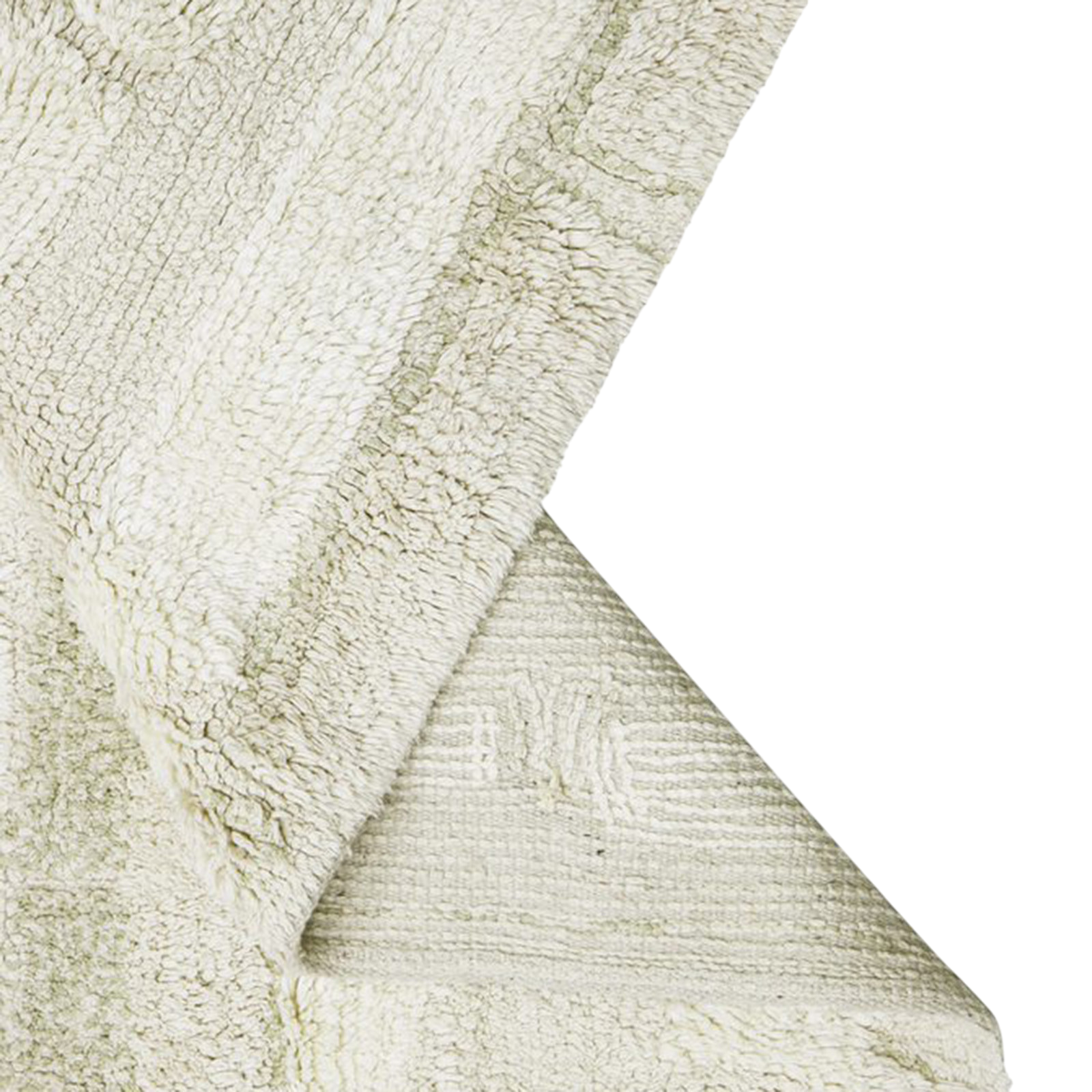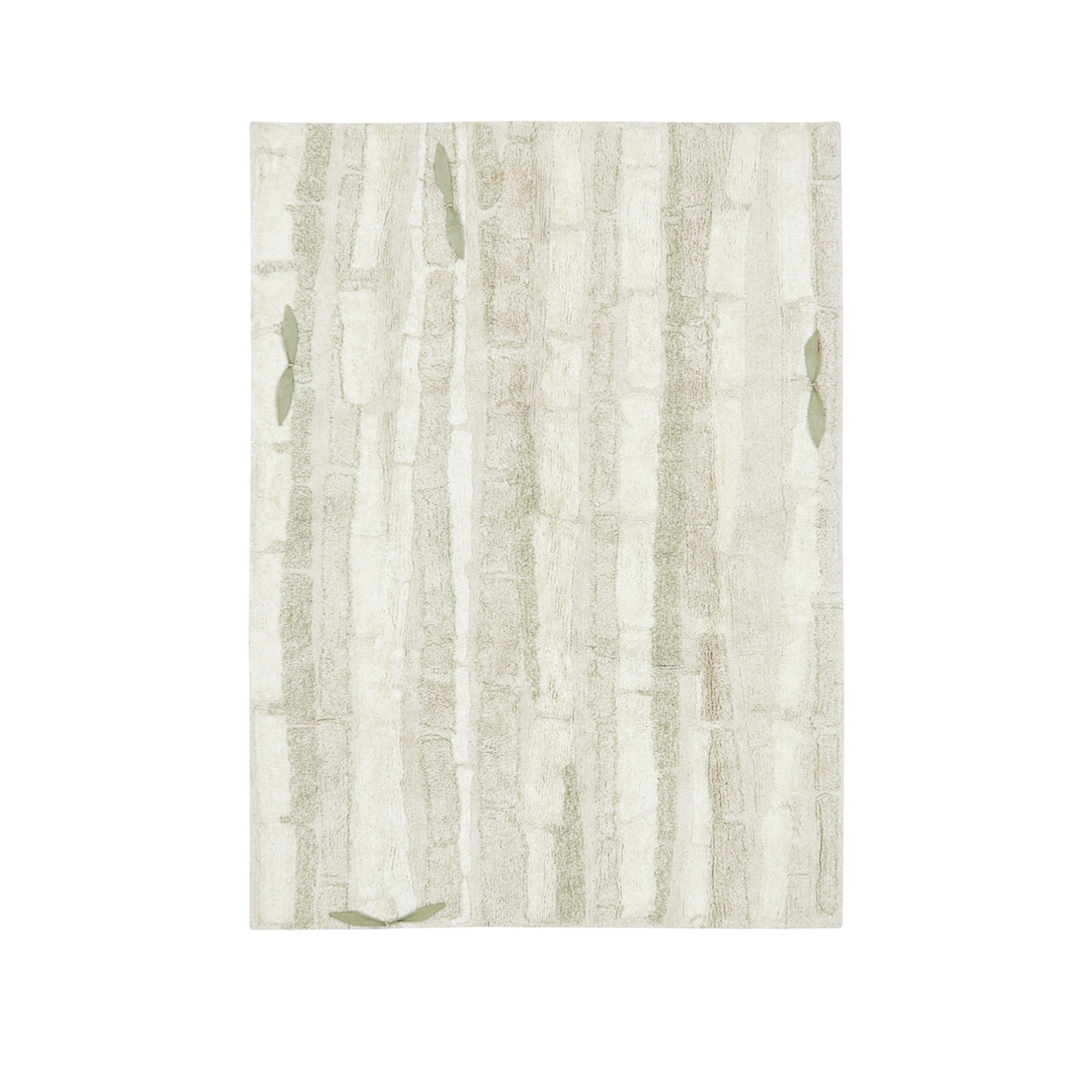 This softly shaded cotton rug, which simulates a bamboo forest, is made from a combination of cotton in natural and olive tones and a softer cotton yarn blended with viscose from bamboo.
