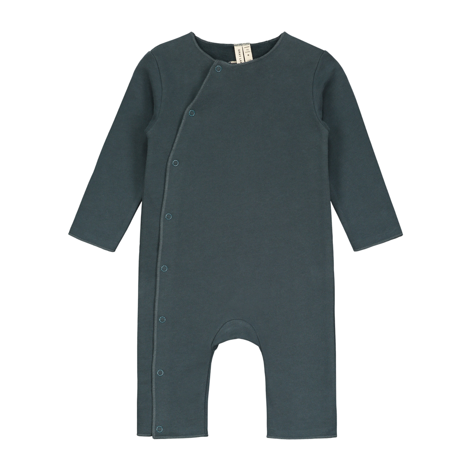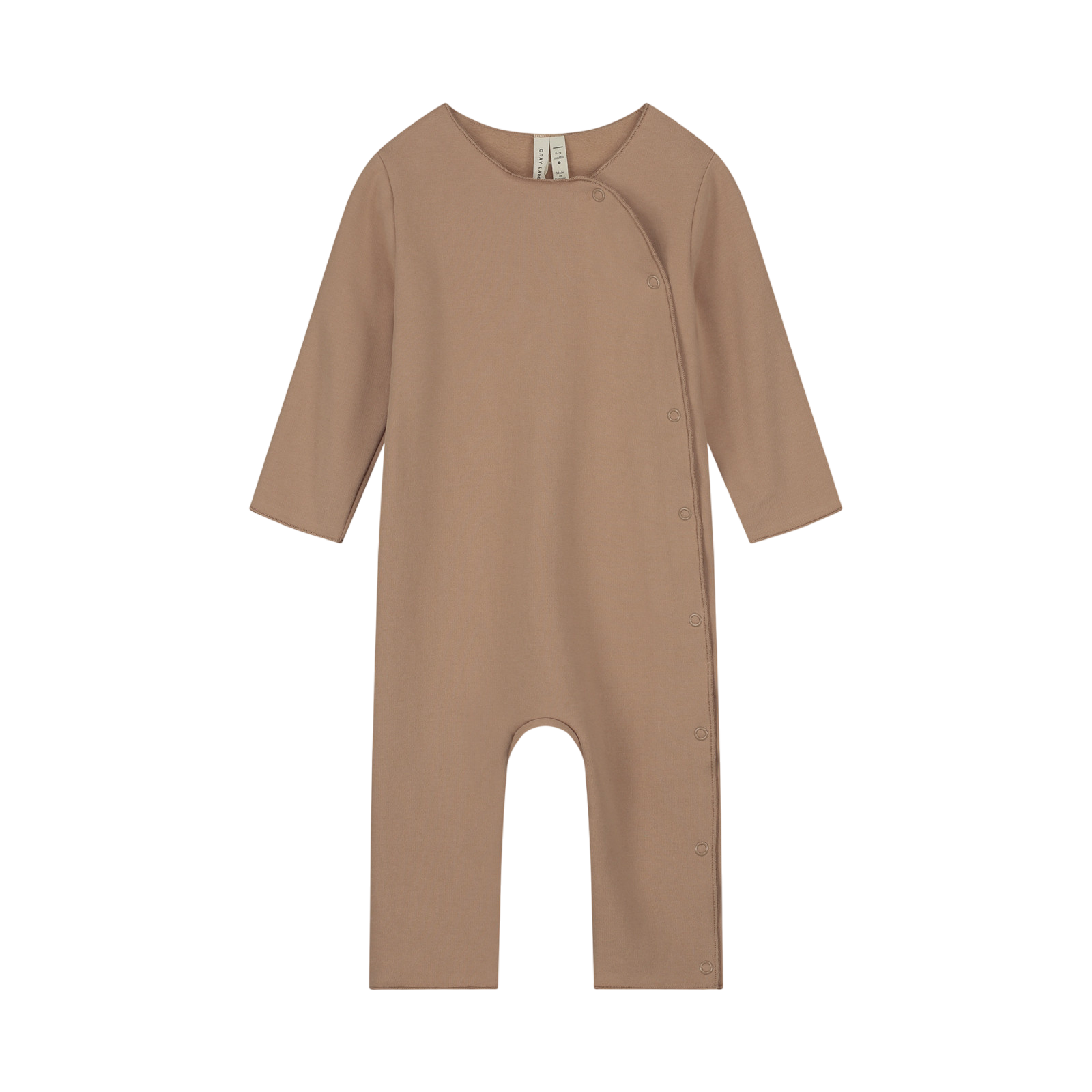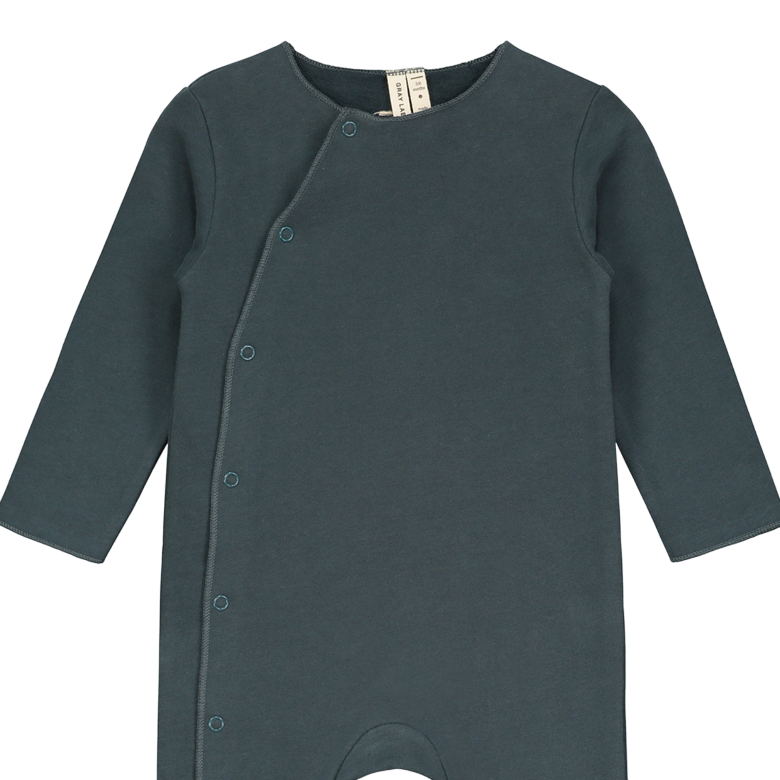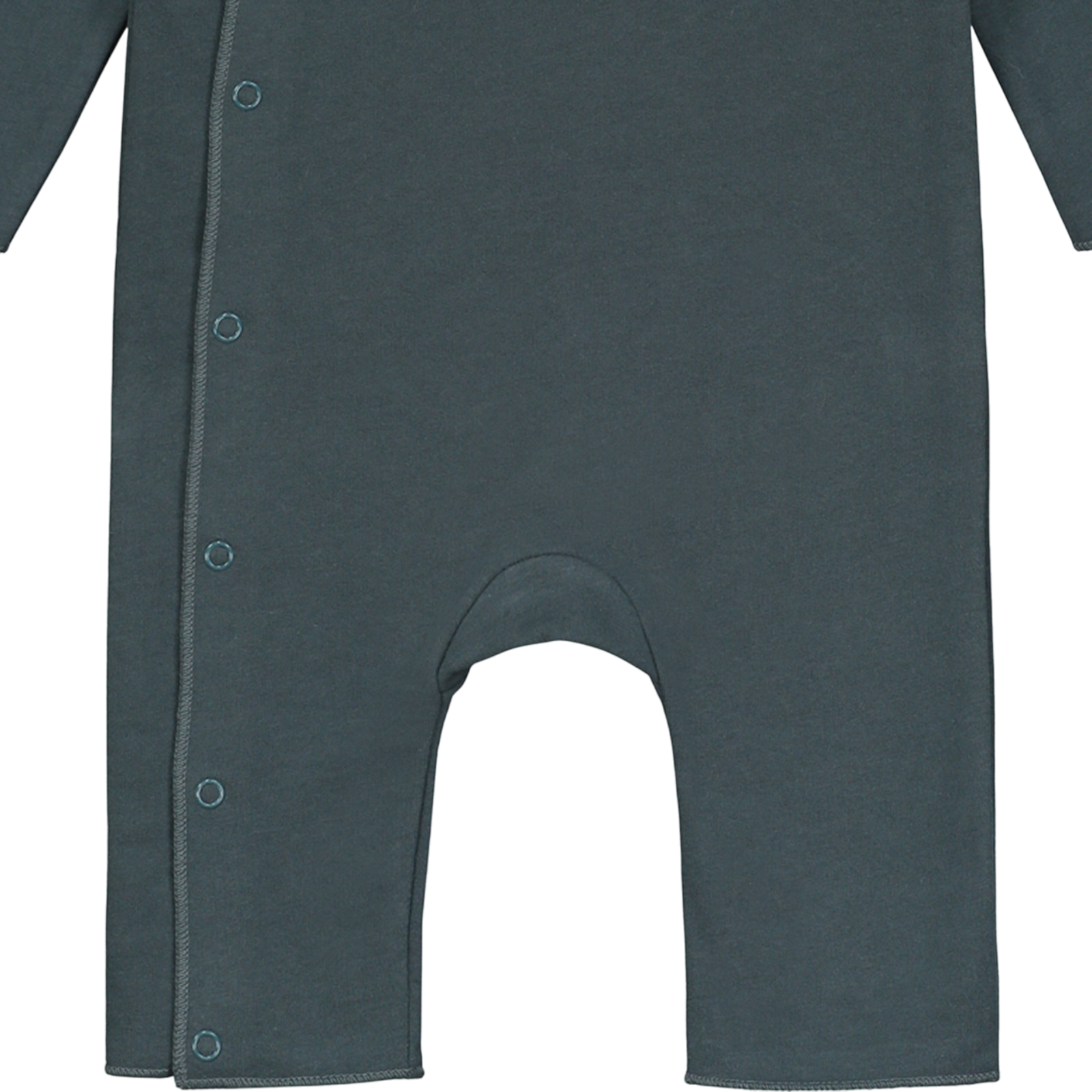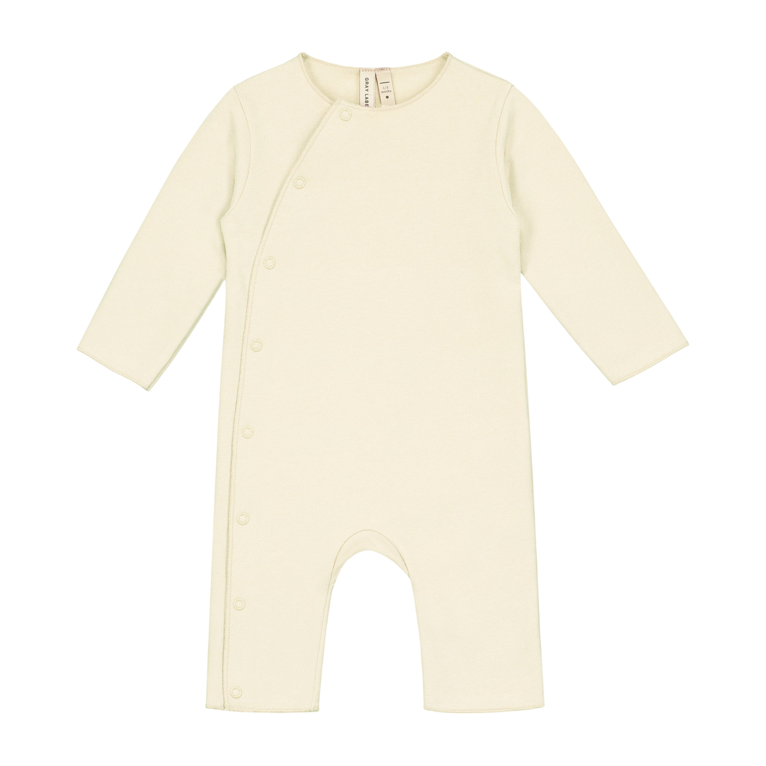 Romper from Gray Label with long arms and legs and left-centered snap button placket.