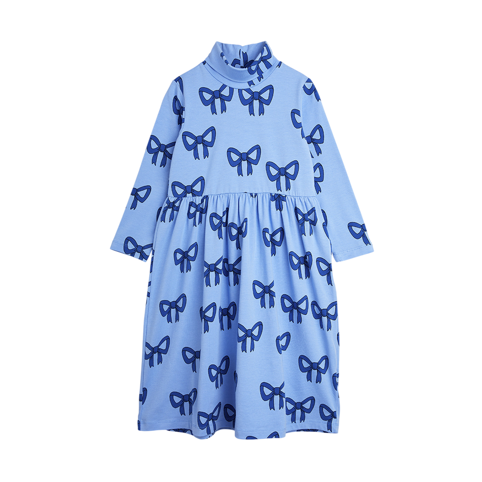 This blue dress by Mini Rodini is printed with a playful bow pattern. It has long sleeves and a comfortable, loose fit. Ideal for leisure or everyday wear.