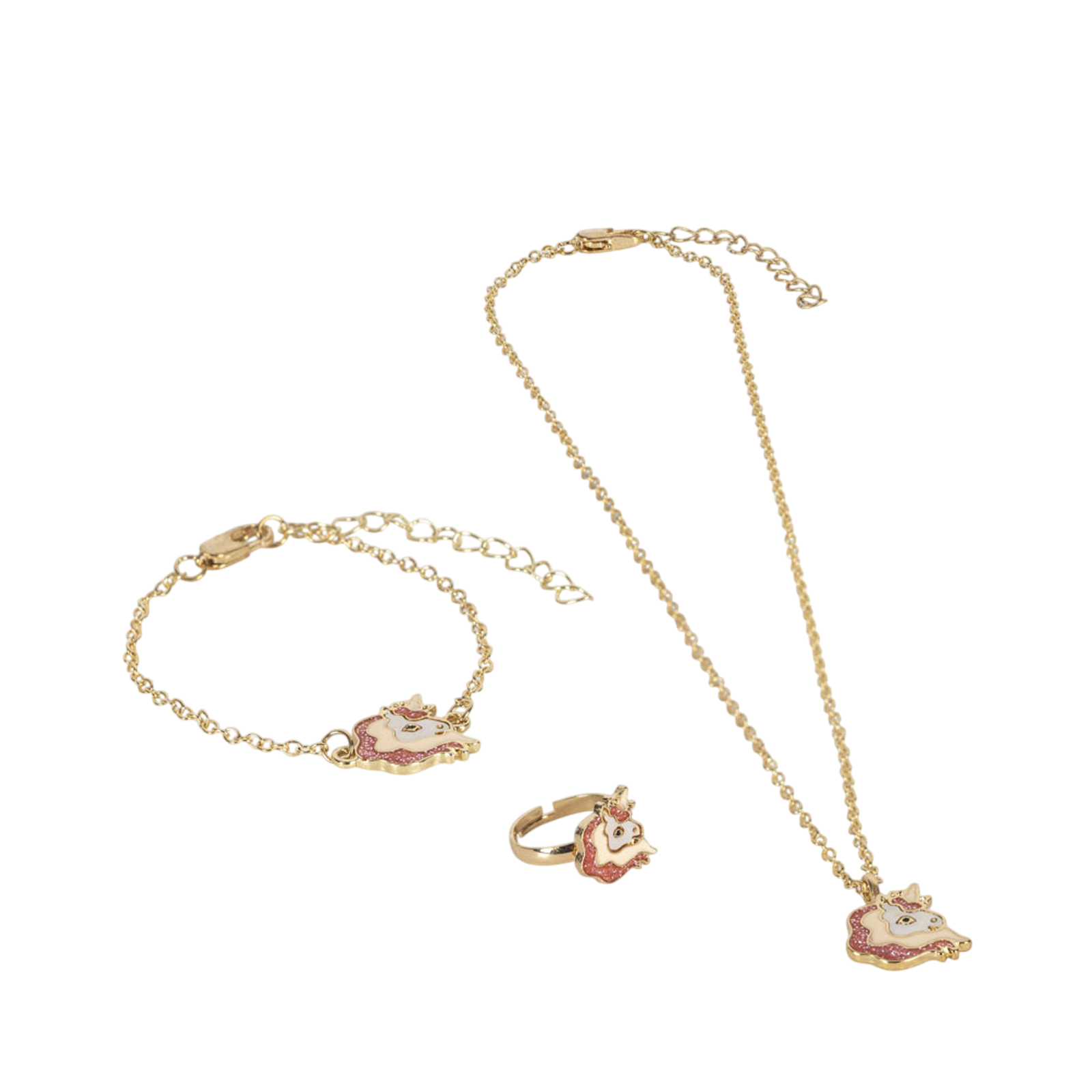 The Konges Sløjd Unicorn Bestie bracelet set of 2 brings a magical sparkle to everyday life and is a wonderful gift idea for children who love sparkling details. The two bracelets with delicate unicorn pendants are not only a stylish accessory, but also a beautiful symbol of friendship and solidarity. Whether as a gift for a first day at school, a birthday party or as a little surprise in between - they will make children's hearts beat faster. Thanks to their adjustable length, they fit delicate wrists perfectly and accompany children throughout the day, whether playing, dressing up or at a unicorn party. The bracelets can be beautifully combined with other Konges Sløjd jewelry or accessories. They are a must in the children's party dress-up box and also make a wonderful little gift. Together with a headband with glitter, a doll with long hair or a playful doll's pram, they make a lovely gift set for girls aged 3 and over. Whether as a little extra for the summer vacations at home, a memento for a best friend or a sparkling detail for a family photo shoot - the delicate bracelets will make children's eyes light up and accompany little adventurers on all their adventures.