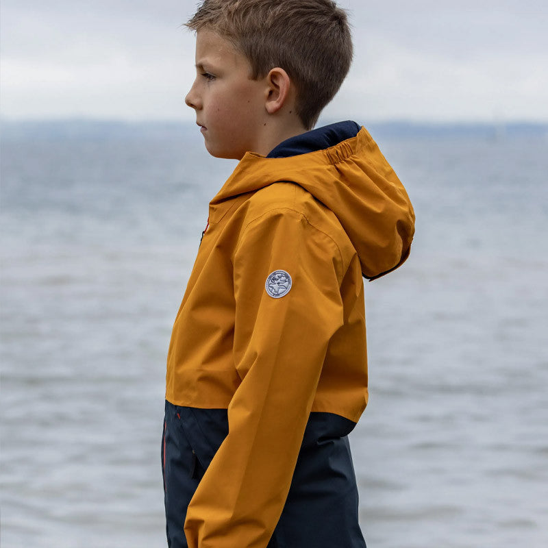 The Ananda children's rain jacket in inca gold from Rukka brings color to grey rainy days. Its waterproof material provides reliable protection from the wet, while the breathable inner lining guarantees a comfortable fit. The full-length zipper with chin guard and elasticated cuffs offer additional protection from wind and rain. The lightweight yet durable jacket is easy to stow away and is perfect for the school run or trips into the great outdoors. Thanks to reflective details, your child is easily visible even in poor visibility. The hood protects the head from the rain and can be removed if required. Two practical pockets offer space for small treasures. Whether for everyday wear or when traveling - this jacket reliably keeps your child dry and ensures freedom of movement.