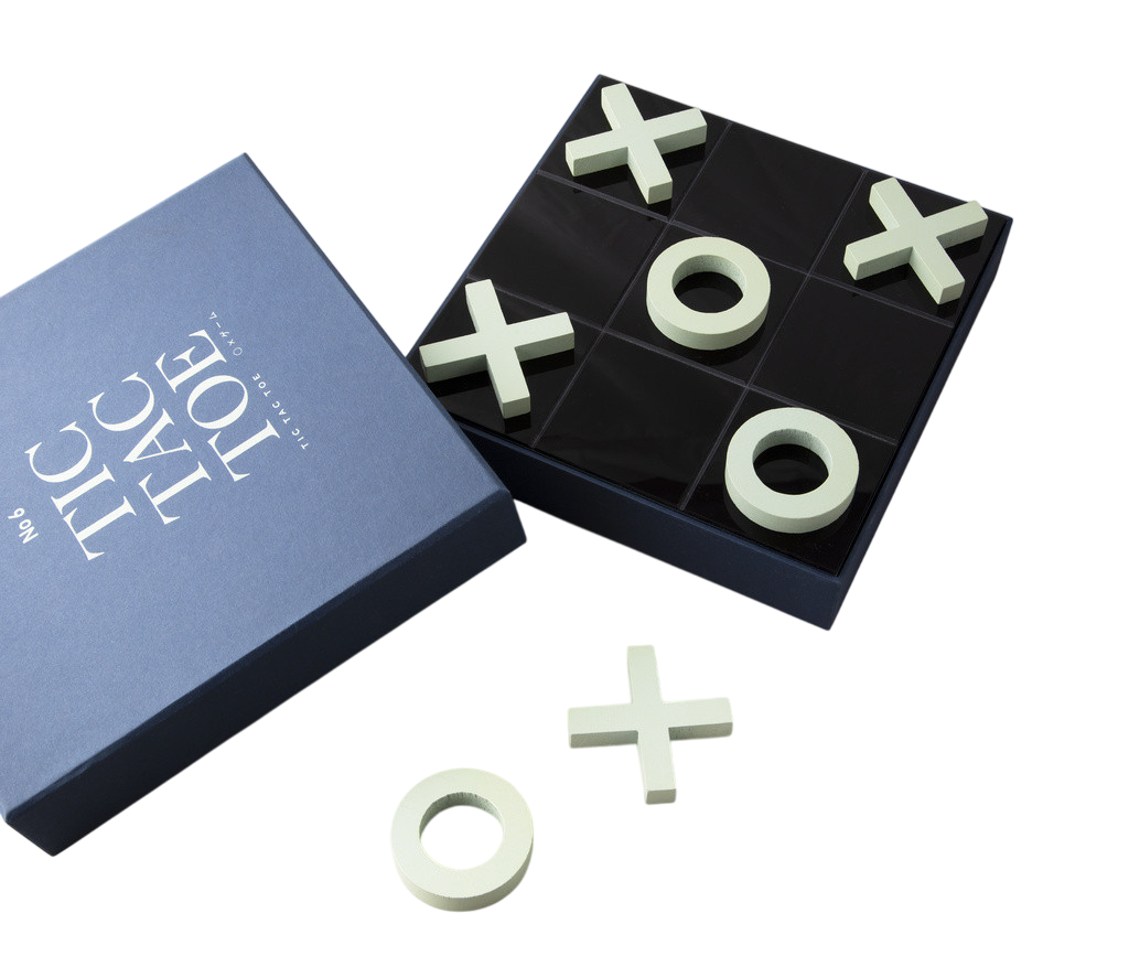 The great classic games in a clear and sophisticated design. Packaged as beautiful and decorative coffee table games, these games are finding their way back into our living rooms. Ideal gifts for all age groups. Tic-Tac-Toe or Three Wins with wooden figures and acrylic board.