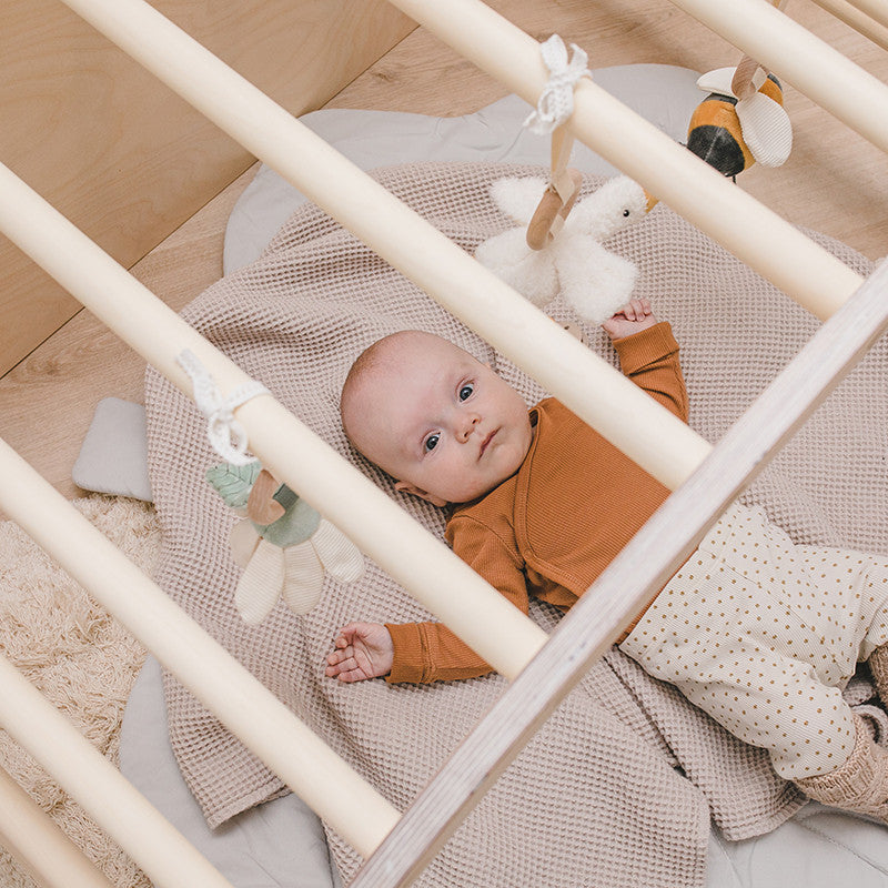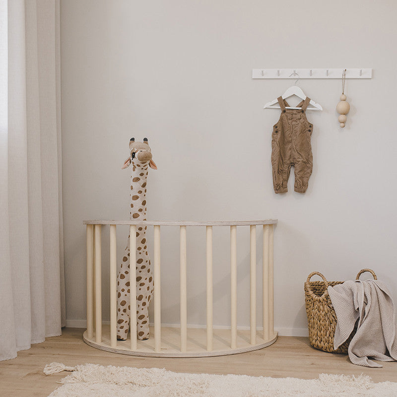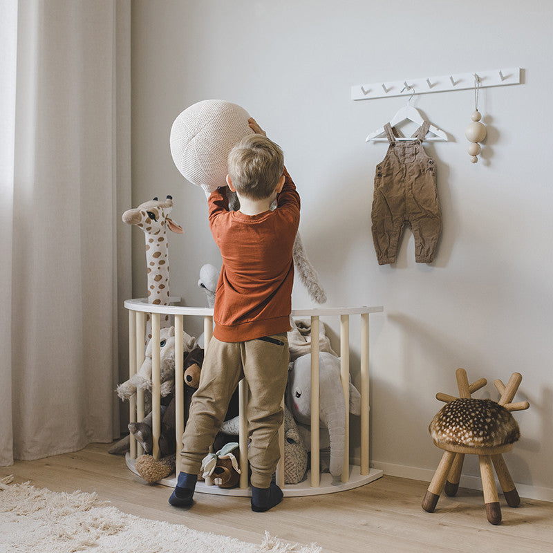 If you turn the arch on its side so that the back panel faces the floor and push it against a wall (or another LUOTO arch), it becomes a toy tray. Ideal for large cuddly toys or for cushions and blankets!