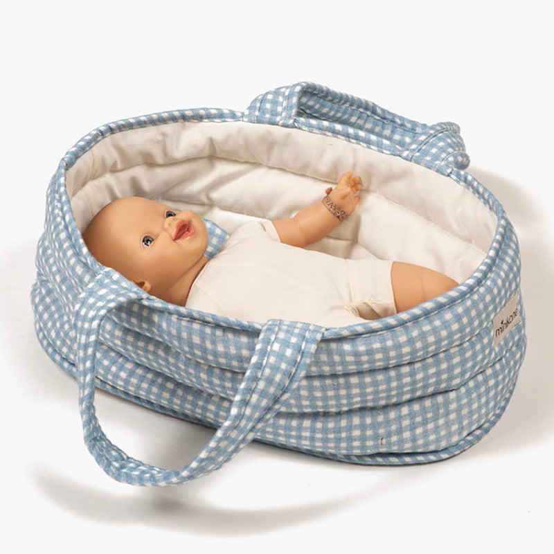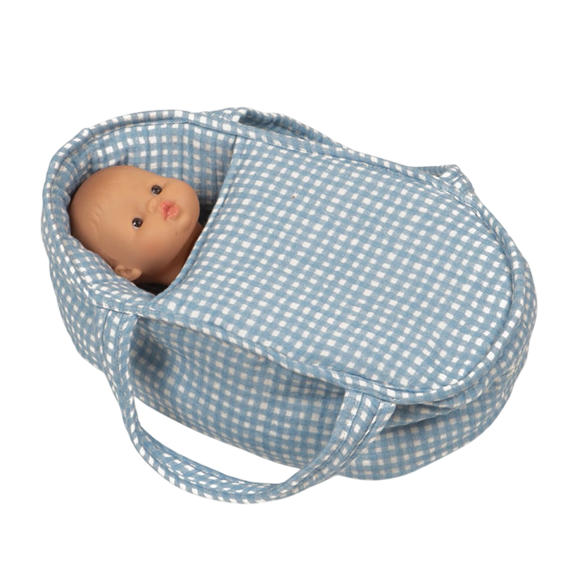 The Vichy Blue doll carrier from Minikane brings comfort and style to the world of dolls. With its classic checked pattern and sophisticated design, it is perfect for children who want to take their dolls with them wherever they go. The carrier is suitable for Minikane Babies dolls or dolls of a similar size (28 cm) and offers a wide range of uses. Whether for a walk, an adventure in the doll's house or as support during doll games with friends - the doll carrier stimulates the imagination and encourages social interaction. Made from soft, high-quality materials, it is comfortable to wear and easy to clean. A durable accessory that allows children to accompany their dolls everywhere in style and comfort.