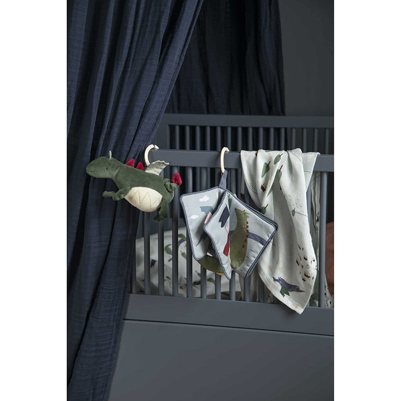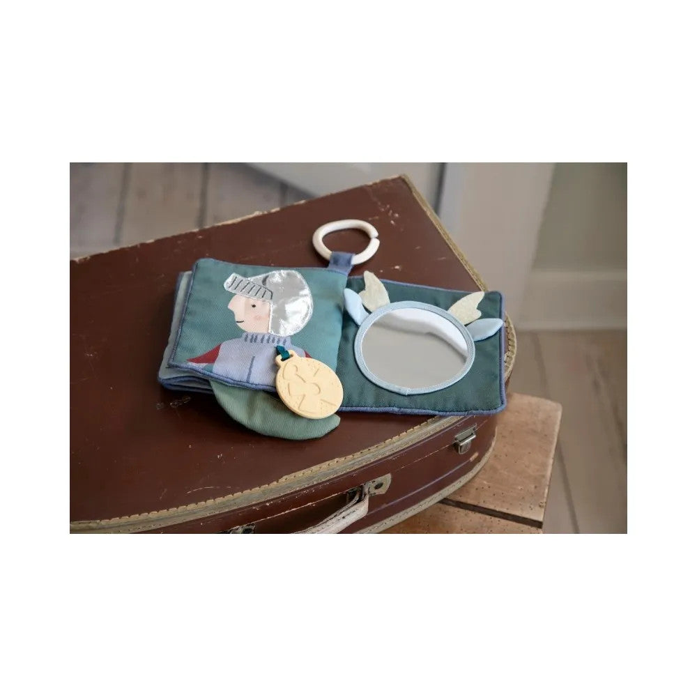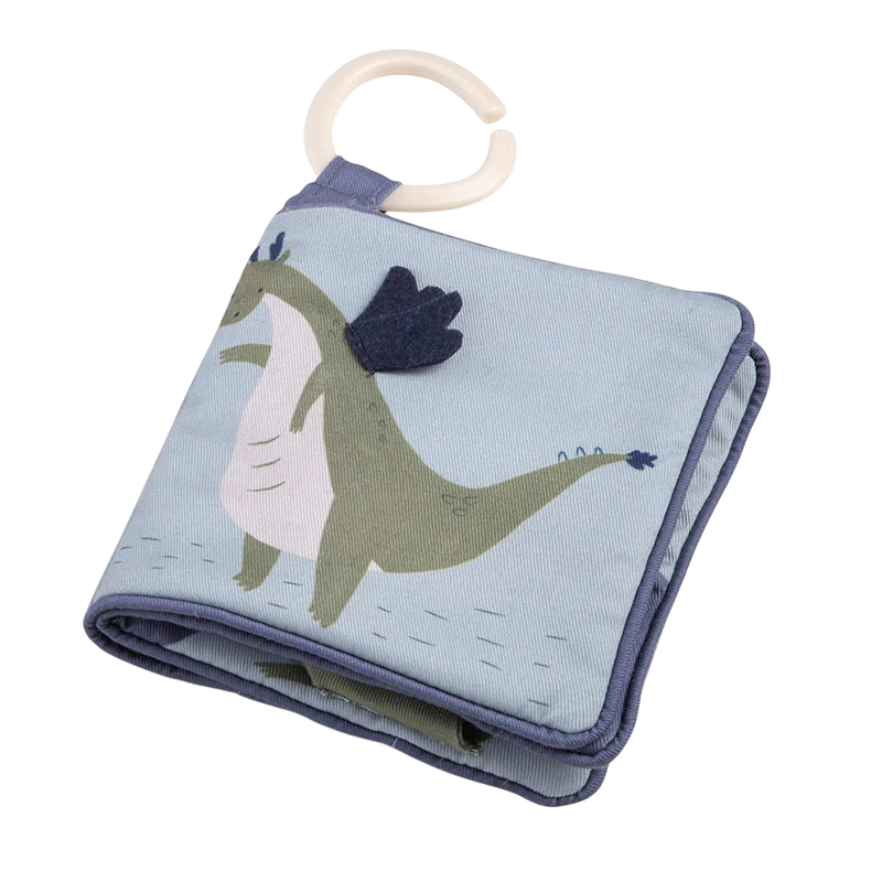 The Dragon Tales activity book from Sebra tells stories about dragons and knights. It consists of 8 pages that stimulate your child's senses and motor skills. One page has a safe baby mirror where the child can discover itself. On the last page there is a teething ring made of TRP plastic, which is BPA, phthalate and formamide free.
