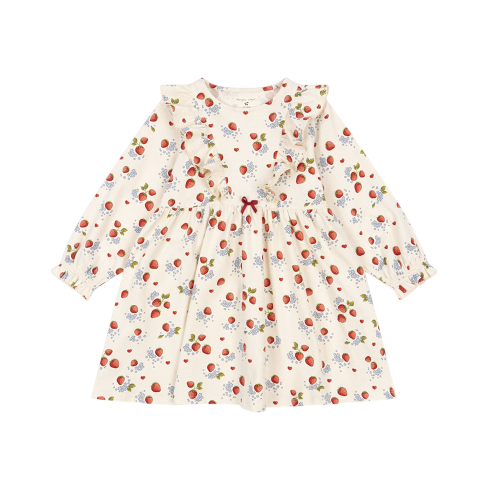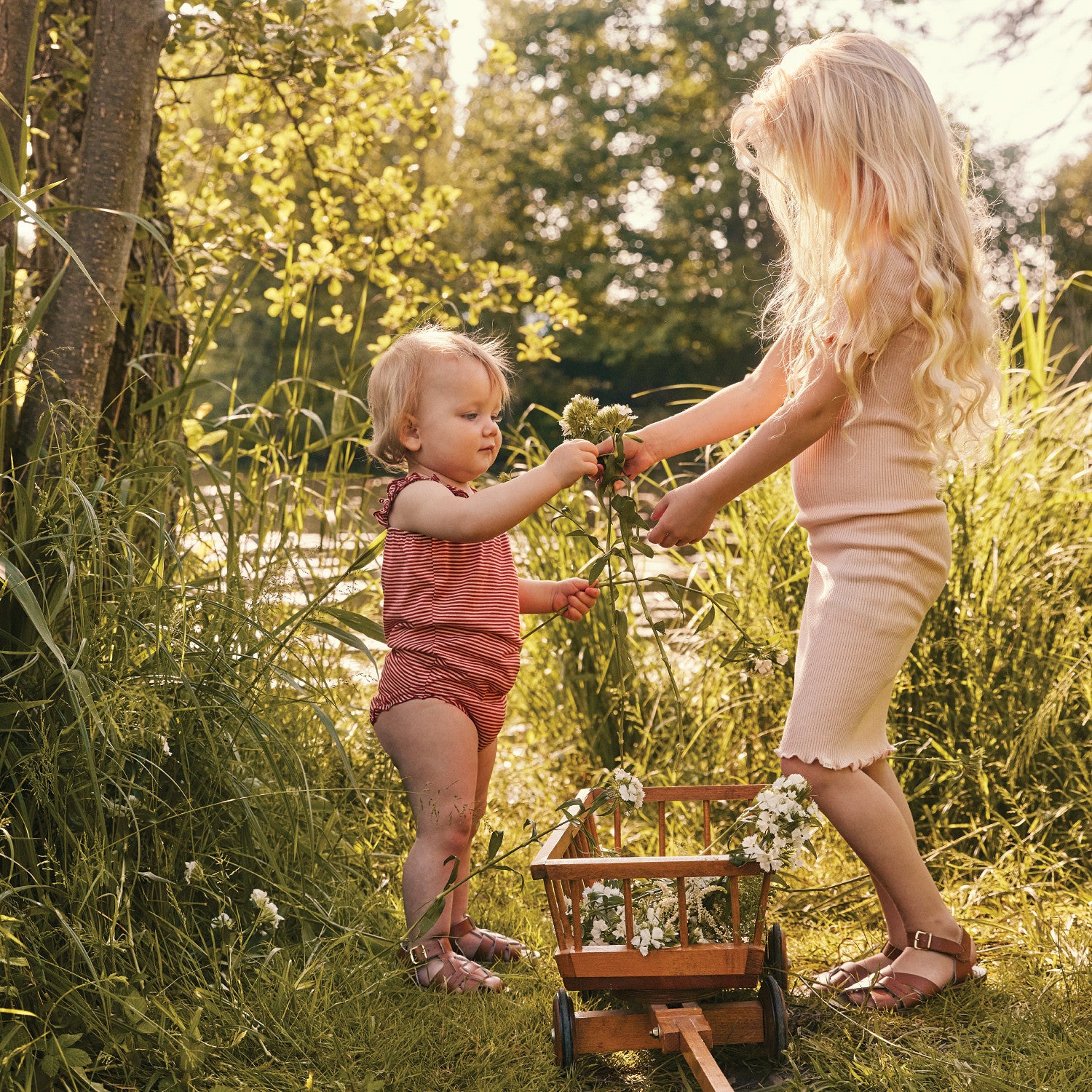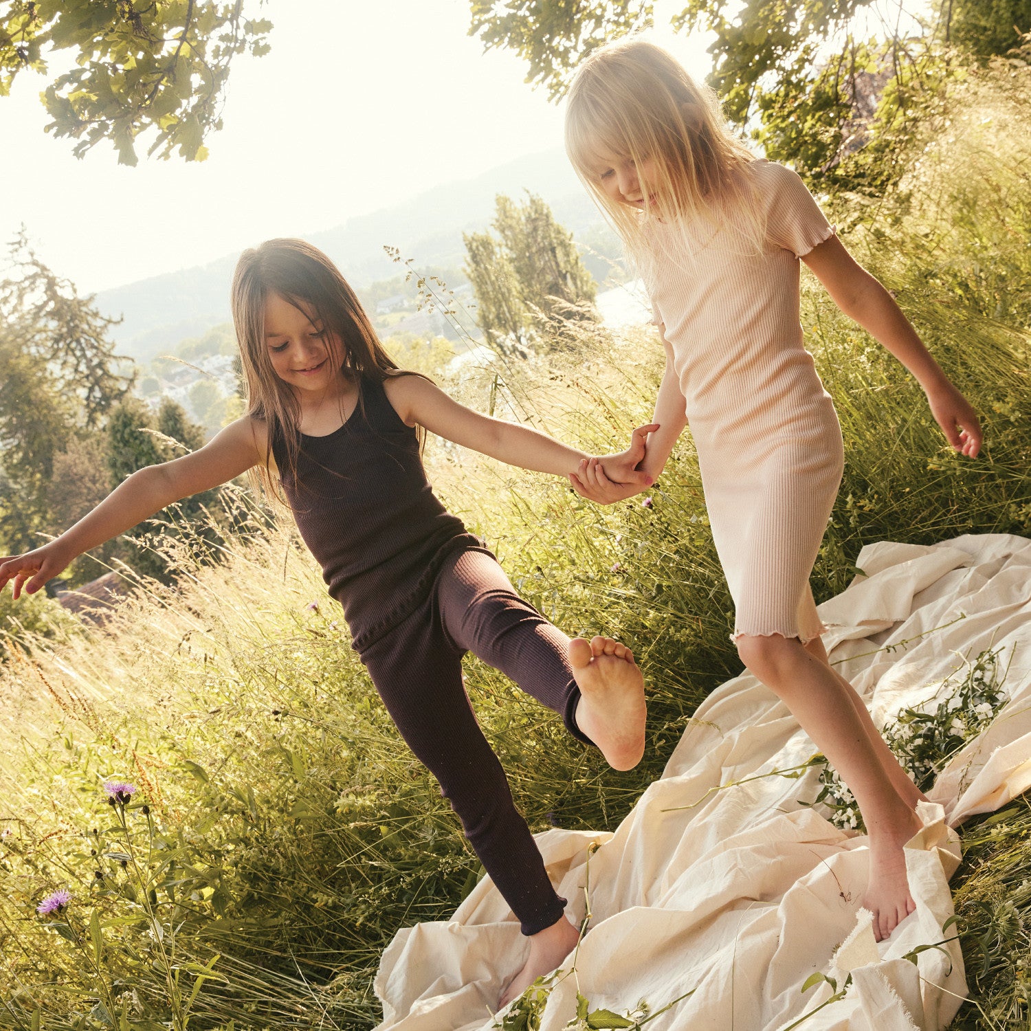 Beautiful seamless ribbed dress from minimalisma made from a soft silk-cotton blend. The dress comes with a round neckline and short sleeves. The fit is form-fitting but very flexible. The sleeves and hem have a girly ruffled finish.