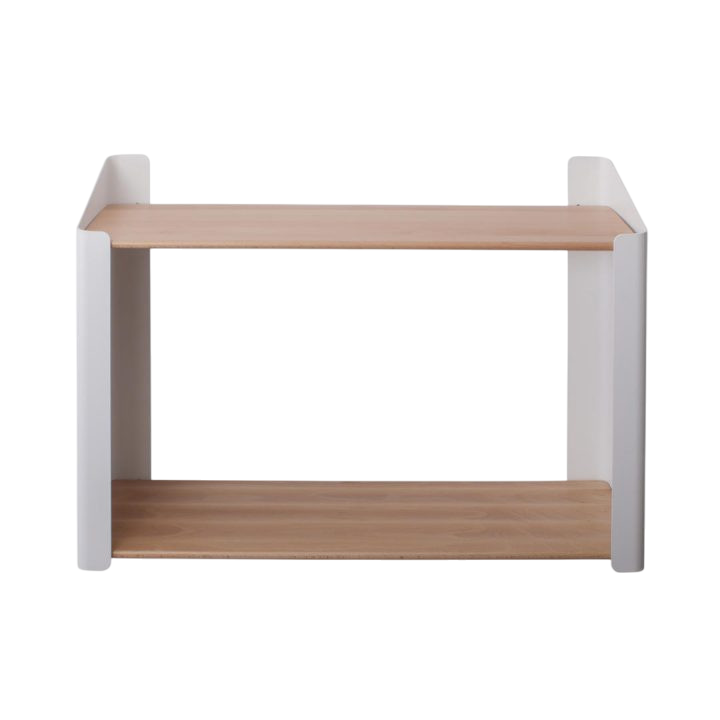 This stylish, elegant shelf has two white powder-coated metal frames made of solid aluminum and two thin beech wood panels with rounded edges, giving it a light and floating appearance. It is therefore suitable for many rooms in the home, including the children's room. A simple storage solution that can help to breathe new life into large wall surfaces. Place pictures, knick-knacks, toys or whatever you like on the shelf and give your home new life and personality. To extend the lifespan of the wooden shelves, they are protected with a matt clear lacquer that is tested in accordance with REACH. REACH is the EU's basic regulation which ensures that chemicals are used responsibly and with minimal risk to health and the environment. The two metal frames can be easily attached to the wall. The shelves are then placed in the frame so that the wall screws are no longer visible. The shelves are mounted on support strips on the metal frame. The shelf comes with wall plugs and screws for wall mounting in concrete or brick walls. Please note that different wall materials require different wall plugs and screws. Always use wall plugs and screws that are suitable for your walls. Ask a DIY store for advice if you are not sure which type to use.