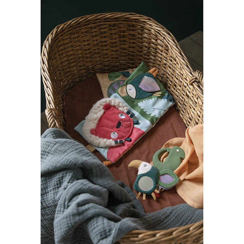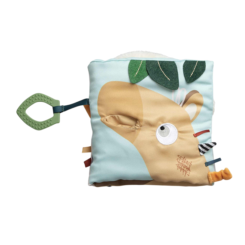 Here, the senses are put to the test while wild animals are discovered at the same time. This fabric book can be unfolded and made longer. It consists of two pages and three little adventures await on each page.