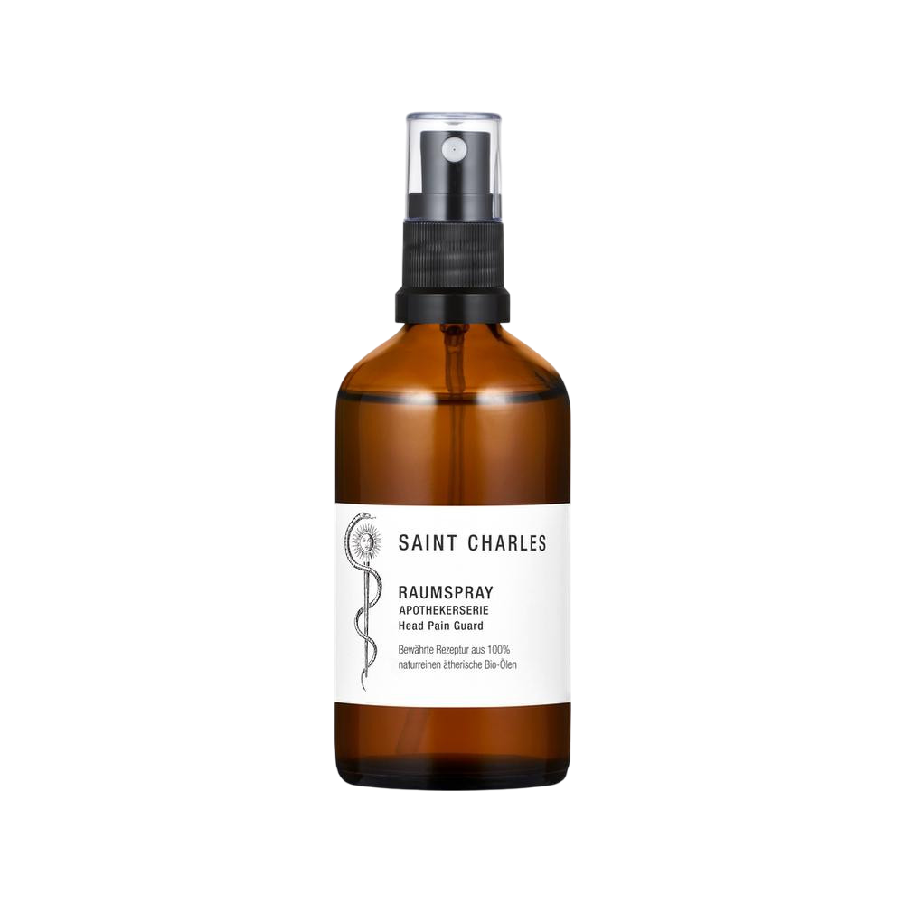 The Head Pain Guard room spray is a tried and tested formulation from the Saint Charles pharmacy and consists of 100% natural essential oils. Head Pain Guard contains peppermint, lavender and eucalyptus, among others.