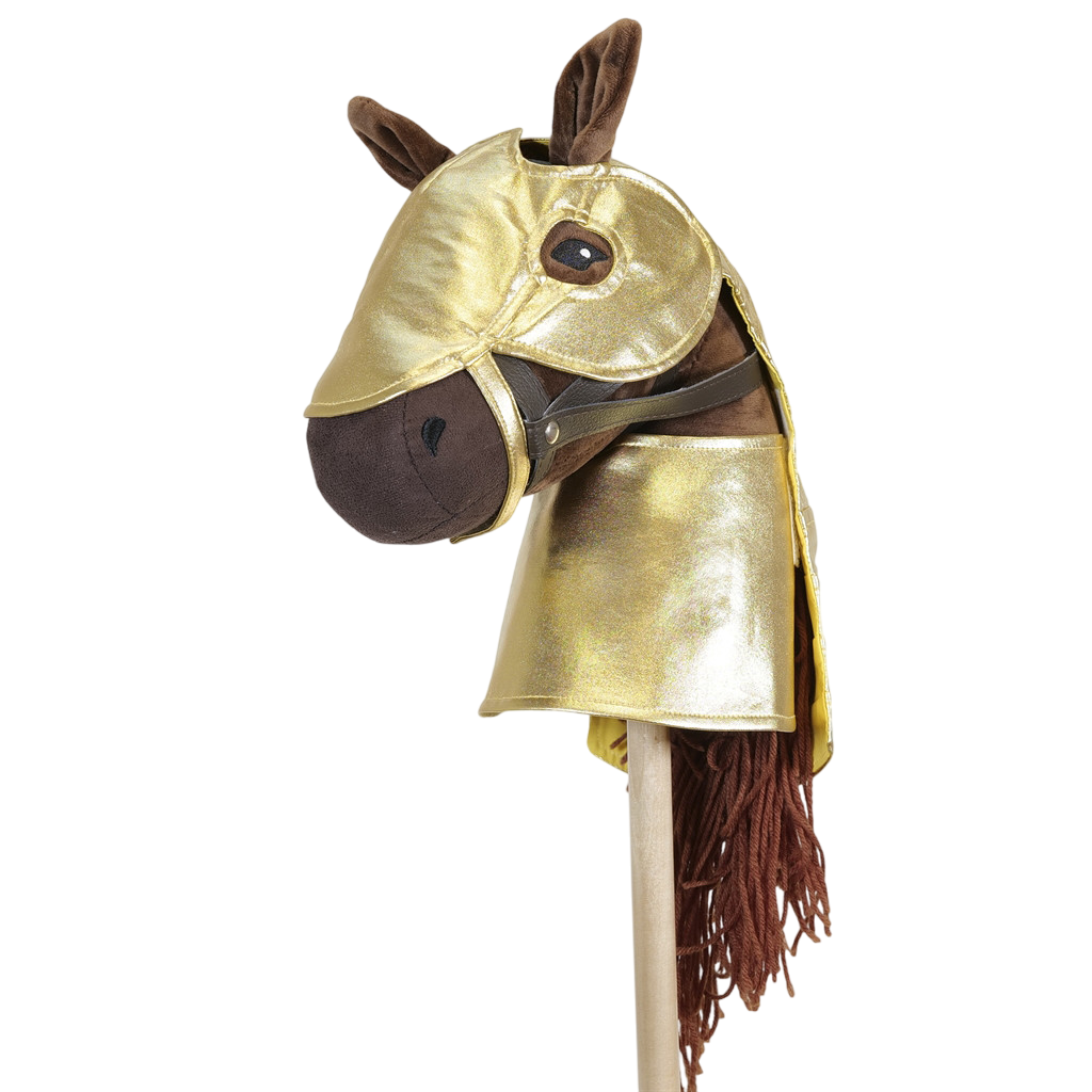 The by ASTRUP horse armor set in gold transforms the hobby horse into a brave companion on the knightly hobby horsing course. The shiny armor protects the horse on its next adventure through the fantasy world. Whether in the garden, on the playground or in the children's room - this armor brings excitement and action to role play. It is also available in two different versions in silver and is perfectly complemented by other separately available accessories such as the knight's helmet, knight's armor, shield and lance from by ASTRUP.