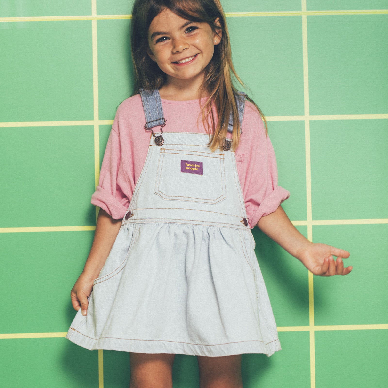 The VHS bib dress from favorite people is the perfect combination of a timeless denim look and sustainable design. Made from soft organic cotton and manufactured under fair production conditions, it is not only very comfortable to wear, but also offers a clear conscience. Whether for school, the playground or a relaxed family outing - this dress is a real all-rounder. Its classic style can be effortlessly combined: for example, with a colorful shirt for a cheerful look, a cardigan for chilly days or with an elegant top for festive occasions. Styled with sneakers, ballerinas or sandals, it is perfect for any occasion and always combines style and sustainability in perfect harmony. What's particularly nice is that this style is also available as short or long dungarees for children and as dungarees for women, so the whole family can find their perfect denim look.