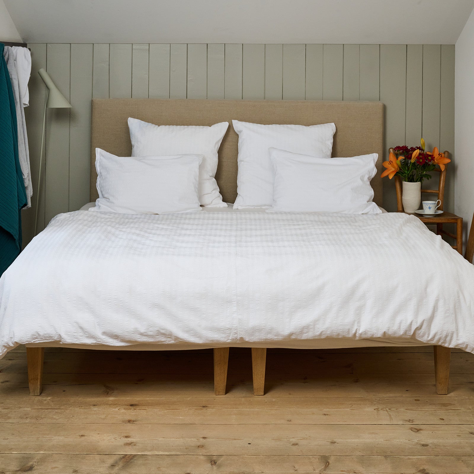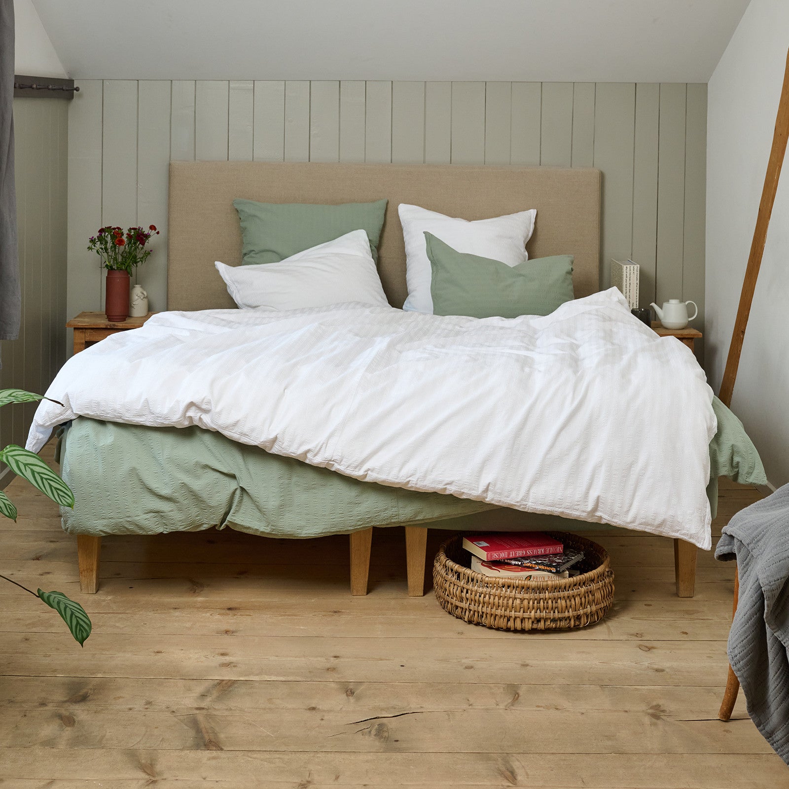 The woven seersucker from Journey Living is made from high-quality, long-staple organic cotton and is grown and processed in accordance with GOTS (Global Organic Textile Standard) specifications. The fine, partial seersucker weave ensures a crepe-like texture and excellent air circulation at night. Bed linen like in a small, exclusive boutique hotel. Your journey starts at home!