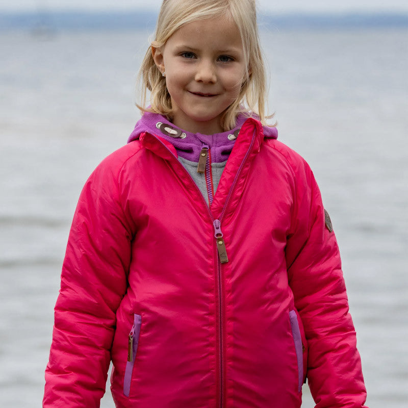 The children's quilted jacket Vida in azalea from Rukka combines warmth with lightness and is ideal for cooler days. The warming padding keeps you pleasantly warm, while the breathable material ensures a balanced body climate. The elasticated cuffs prevent cold air from penetrating and offer additional comfort. Thanks to its lightweight cut, the jacket is perfect as a transition jacket or under a rain shell. Reflective details ensure greater safety in poor light conditions. Two practical pockets offer storage space for small items. With this jacket, your child is perfectly equipped for everyday life or outdoor adventures.