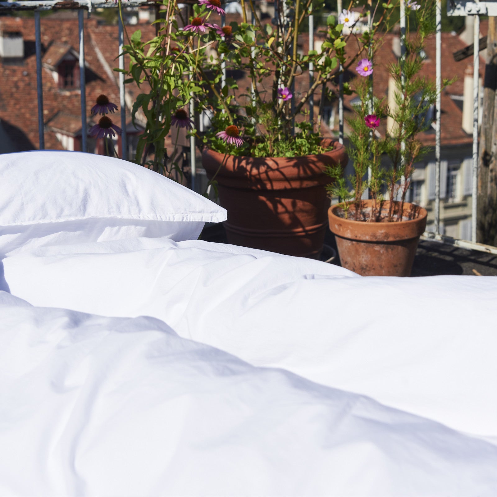 The Organic Cotton Collection is made from 100% organically grown cotton and processed in accordance with the GOTS standard. The stonewash finish gives the cotton percale a soft feel and a great, matt casual look. The designs and colors were developed in collaboration with the Swiss design label Zambonstahl. You can also find matching cushion covers here.
