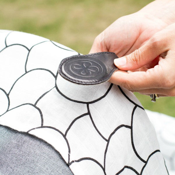 | Additional Information | 2 reversible swaddle clips, one side leather / one side grey canvas, size: 10 x 6 cm |
