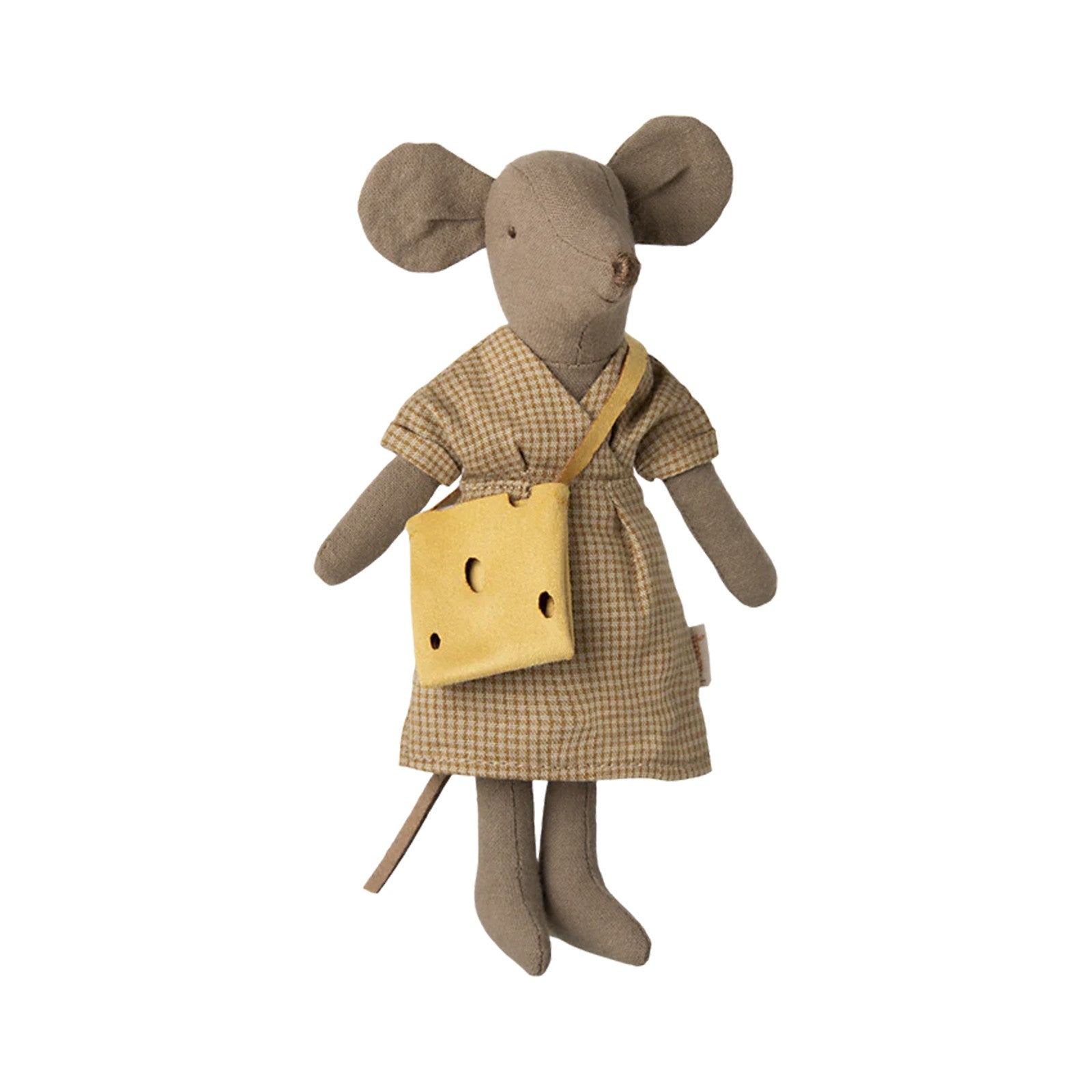 The Mama Mouse dress and bag add a charming retro touch to the Maileg collection. The dress with the classic houndstooth pattern is elegant and comfortable at the same time, ideal for any occasion in the mouse house. The outfit is complemented by a practical bag in the shape of a piece of cheese - a loving homage to the world of mice. Every detail has been carefully designed to enrich role play and immerse children in an imaginative world. Combine this set with other Maileg products such as the Maileg sofa or the Maileg doll's house to integrate Mama Mouse even more and create new stories. With this outfit, Mama Mouse is guaranteed to be an eye-catcher and add a special touch to stories. The high-quality materials ensure durability and a pleasant feel. Ideal as an addition to other Maileg products and a magical gift for all Maileg fans.