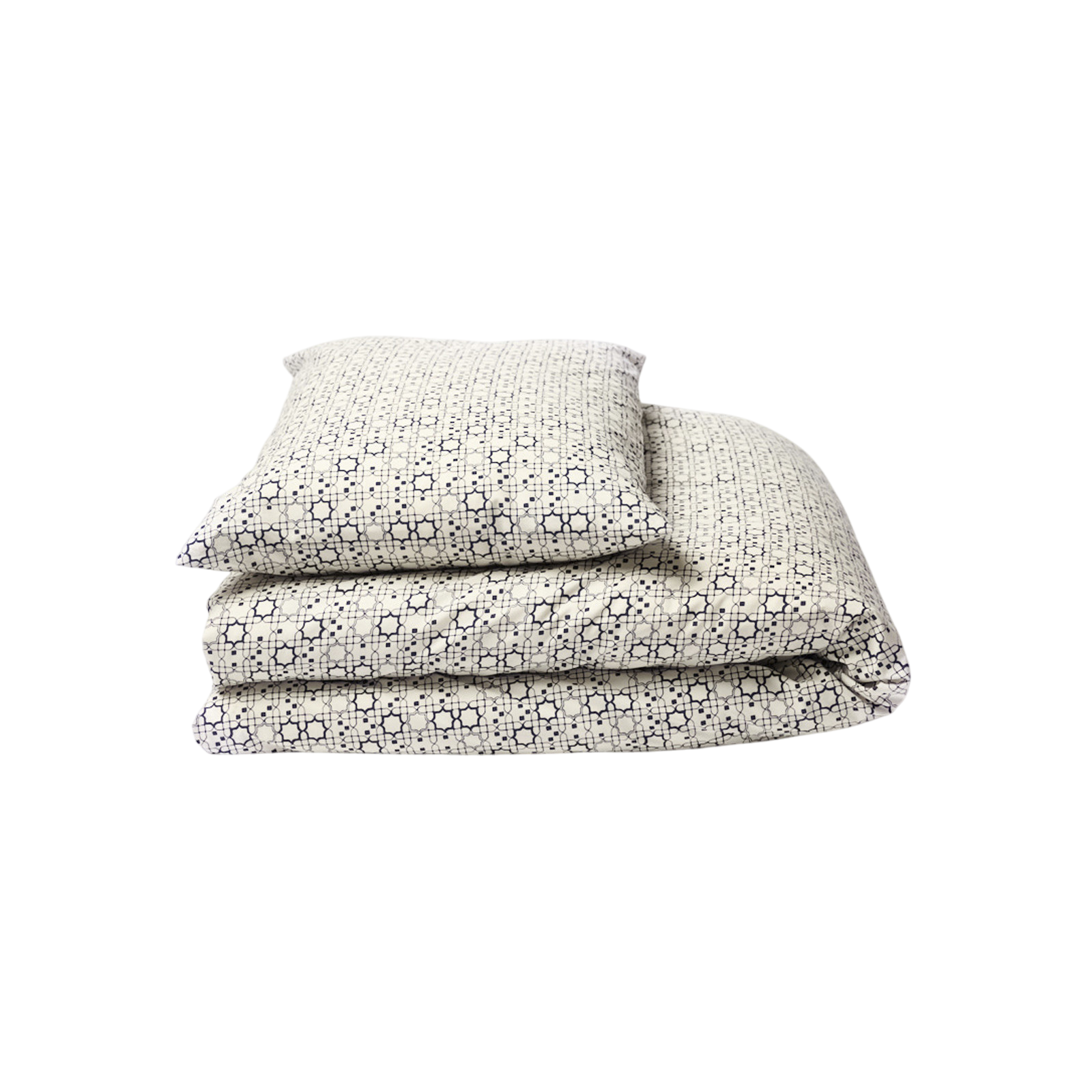 The Marrakech bed linen was created from this decorative wealth; the design has interpreted this fascinating geometry in a light and airy way. The printed organic cotton percale spans the gap between traditional craftsmanship and modern minimalism.