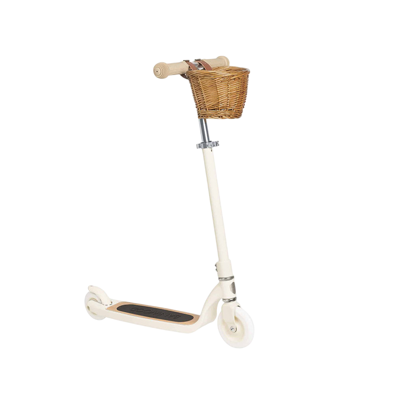 The Maxi Scooter from Banwood in Cream opens the door to new adventures for older children who want to discover their world actively and with ease. With its elegant, soft color scheme, classic wicker basket and sturdy aluminum frame, it combines safety and style in a playful way. The scooter with two wheels is ideal for children who are already experienced and want to master longer distances - whether it's the daily walk to school, a Sunday outing or meeting up with friends. The height-adjustable handlebar grows with the child and the non-slip footboard ensures a firm footing, while the ergonomic design offers ease and control when riding. The maxi scooter becomes a loyal companion on the way to independence - a symbol of movement, freedom and the quiet happiness of being able to move at your own pace. With Banwood, every step becomes a poetic step into the world.