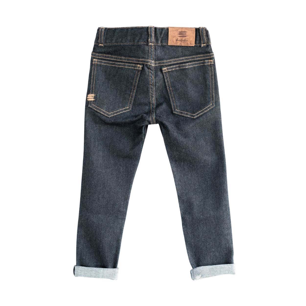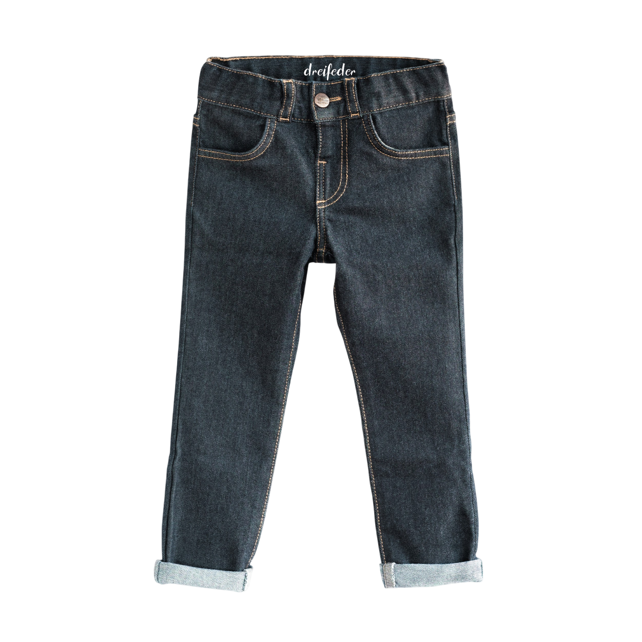 These midi jeans in indigo from Dreifeder are an all-rounder for active children. Their classic design combines functionality with child-friendly comfort. Whether playing in the sandpit, balancing on the wall or dancing in the living room - they fit comfortably and follow every movement. The indigo coloring can be combined in a variety of ways and always remains stylishly simple. Made from durable denim, they can withstand wild adventures while remaining pleasantly soft. Dreifeder has created a garment that combines everyday practicality with a touch of poetry. In these jeans, little everyday moments become experiences in which children can be themselves.