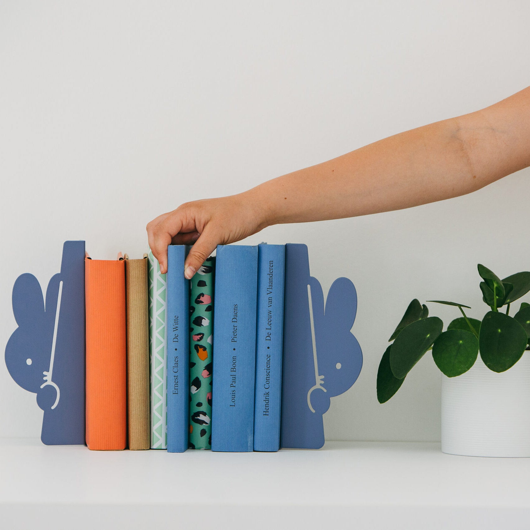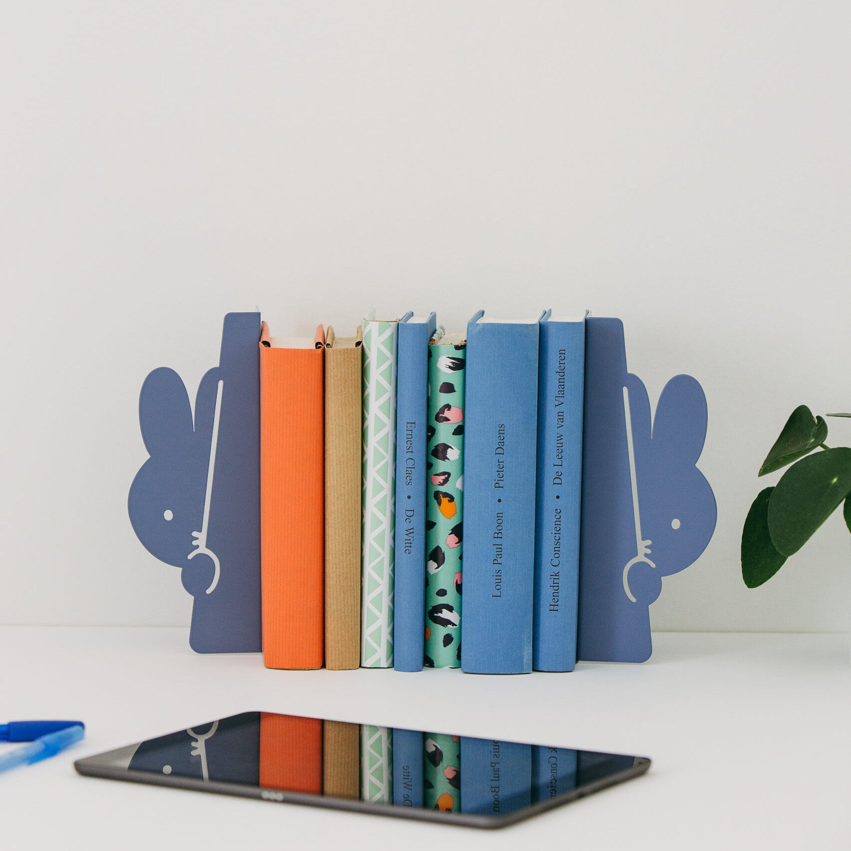 The Miffy Peek-a-boo bookend - Blue by Atelier Pierre is more than just a functional object - it is an invitation to a world of stories. In soft blue, it is reminiscent of the sky above a summery coastal landscape, of quiet moments in which a book opens the door to a new world. Miffy hides curiously behind the pages and holds them securely in place - whether it's an adventure novel, fairytale book or children's classic. This bookend is perfect for young and old readers who love order but also want to add a playful accent to their bookshelf. It is suitable for the children's room, the living room or the desk and inspires you to keep discovering new books. High-quality workmanship and stylish design combine functionality with a touch of fantasy.