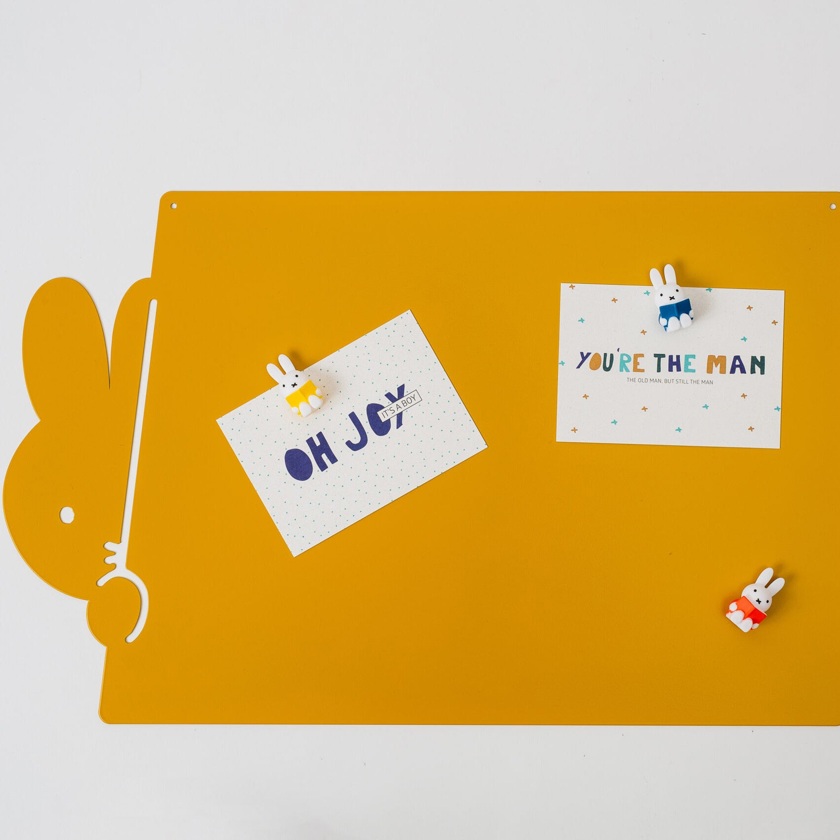 As bright as the morning sun, the Miffy Peek-a-boo magnetic board - Hanging - Yellow from Atelier Pierre brings warmth and joy to any home. Perfect for displaying small works of art, jotting down important notes or playfully organizing everyday family life. Miffy peers curiously from behind the board and adds a playful but stylish accent to the children's room, kitchen or office. The sturdy magnetic surface offers space for reminders, photos or small messages. Thanks to its high-quality design, it remains a long-lasting companion that combines functionality with aesthetics. A highlight for anyone who wants to enrich life with color and creativity.