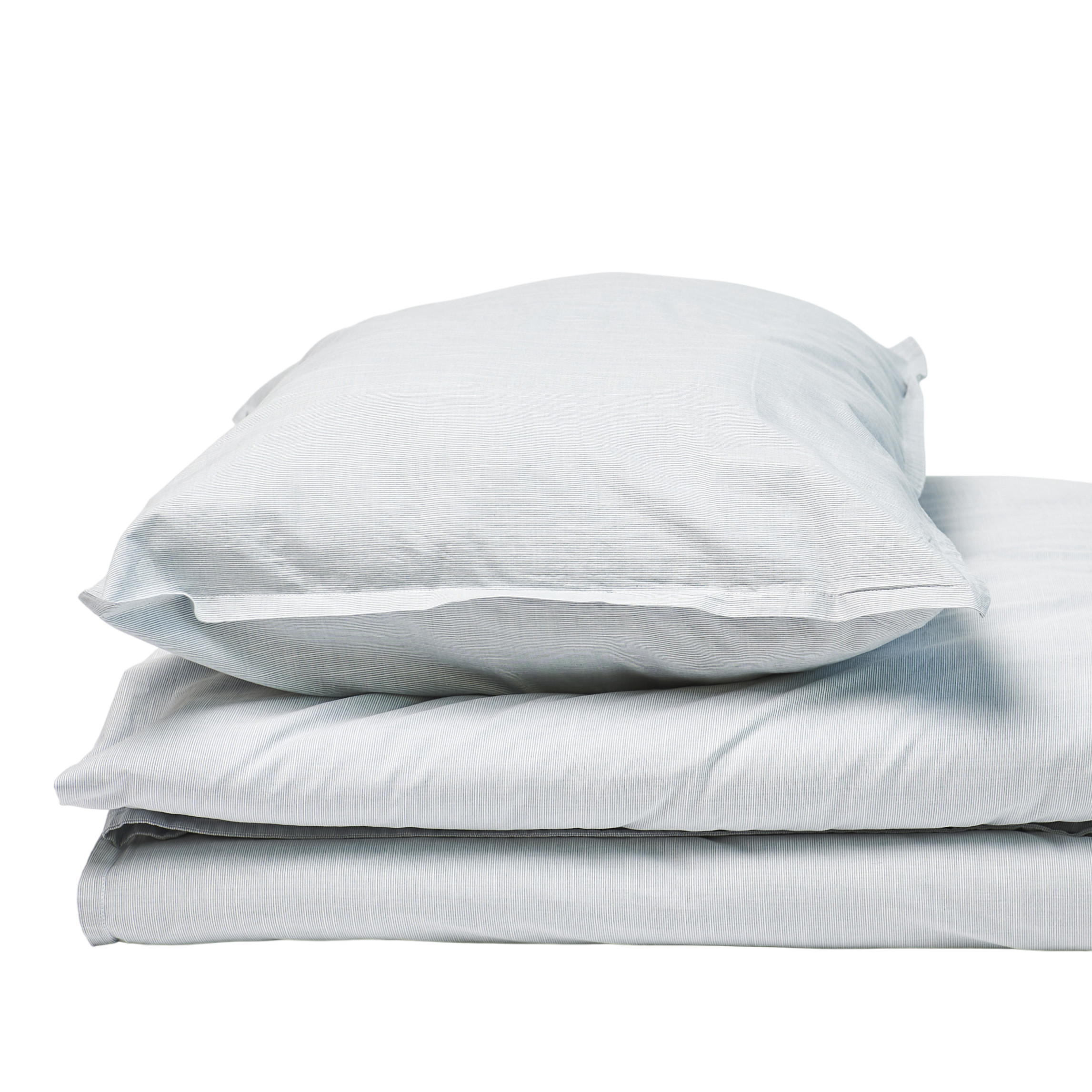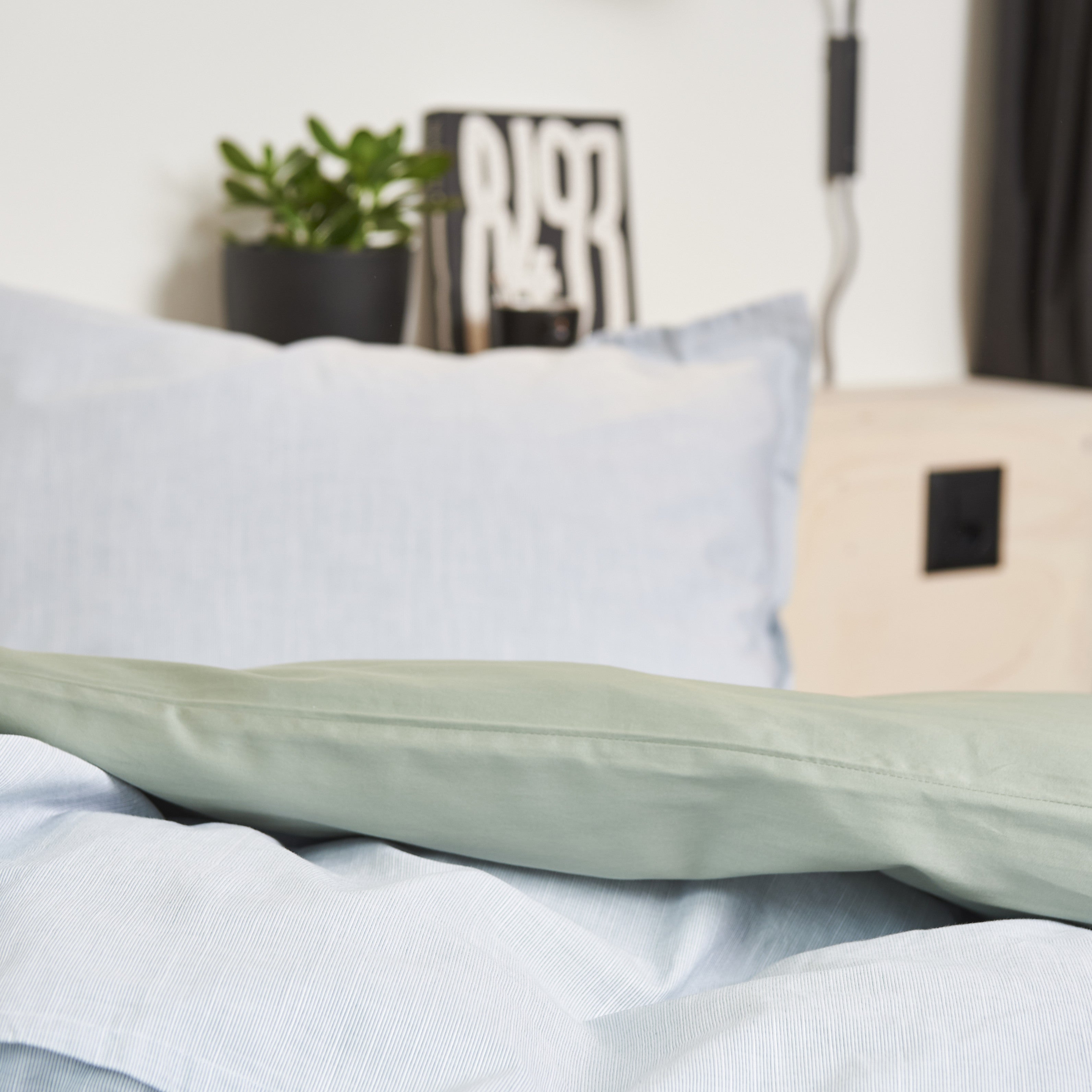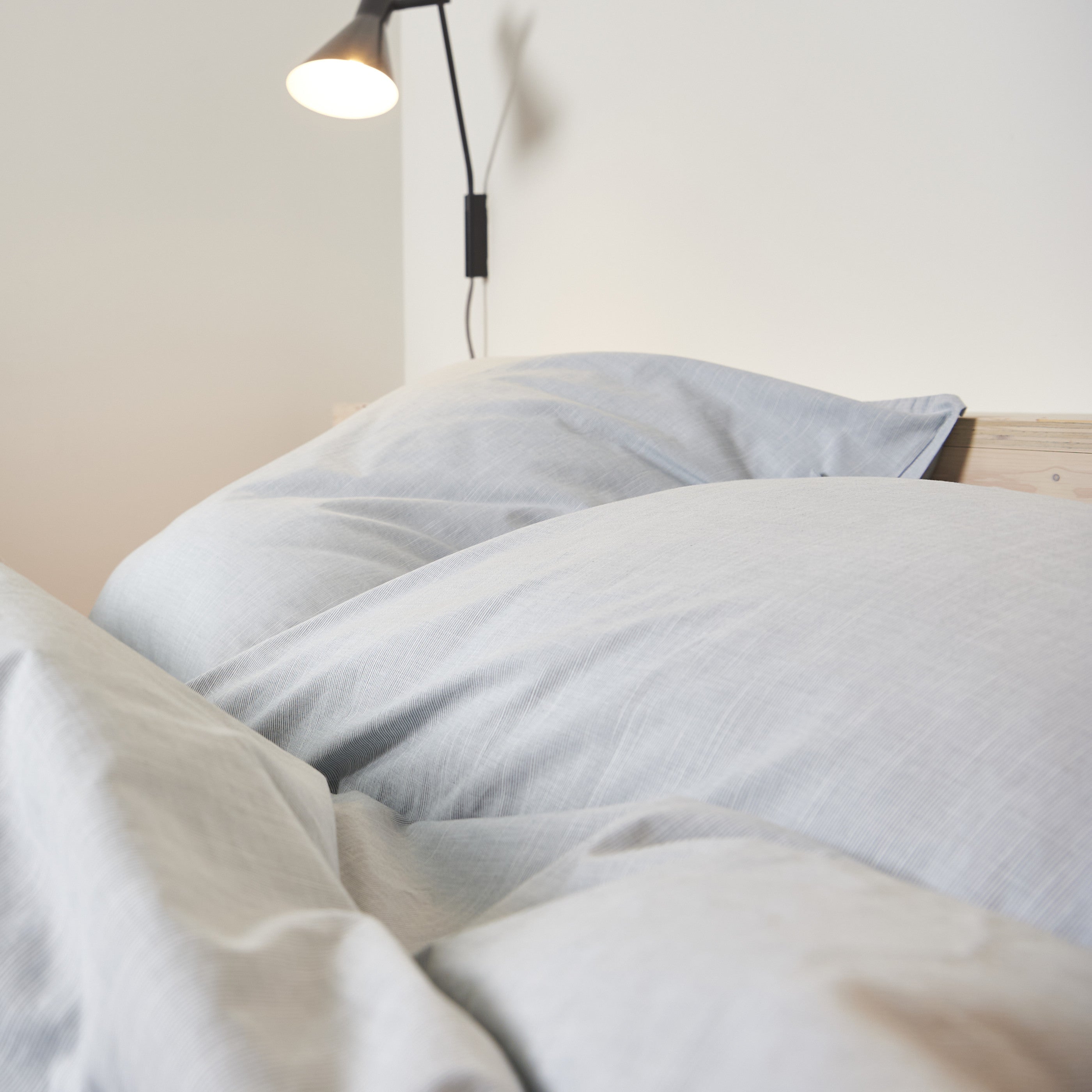 Nyholm is our latest innovation: the fabric is a blend of organic cotton and Tencel in a mélange look, yarn-dyed in the cool Nordic colors stone and eucalyptus. Tencel is a lyocell fiber obtained from sustainable forestry using a closed-loop process. The quality is silky soft, super light, easy to care for and non-iron. The Tencel fibers absorb moisture very well and ensure a pleasantly cool and dry climate on your skin at night.