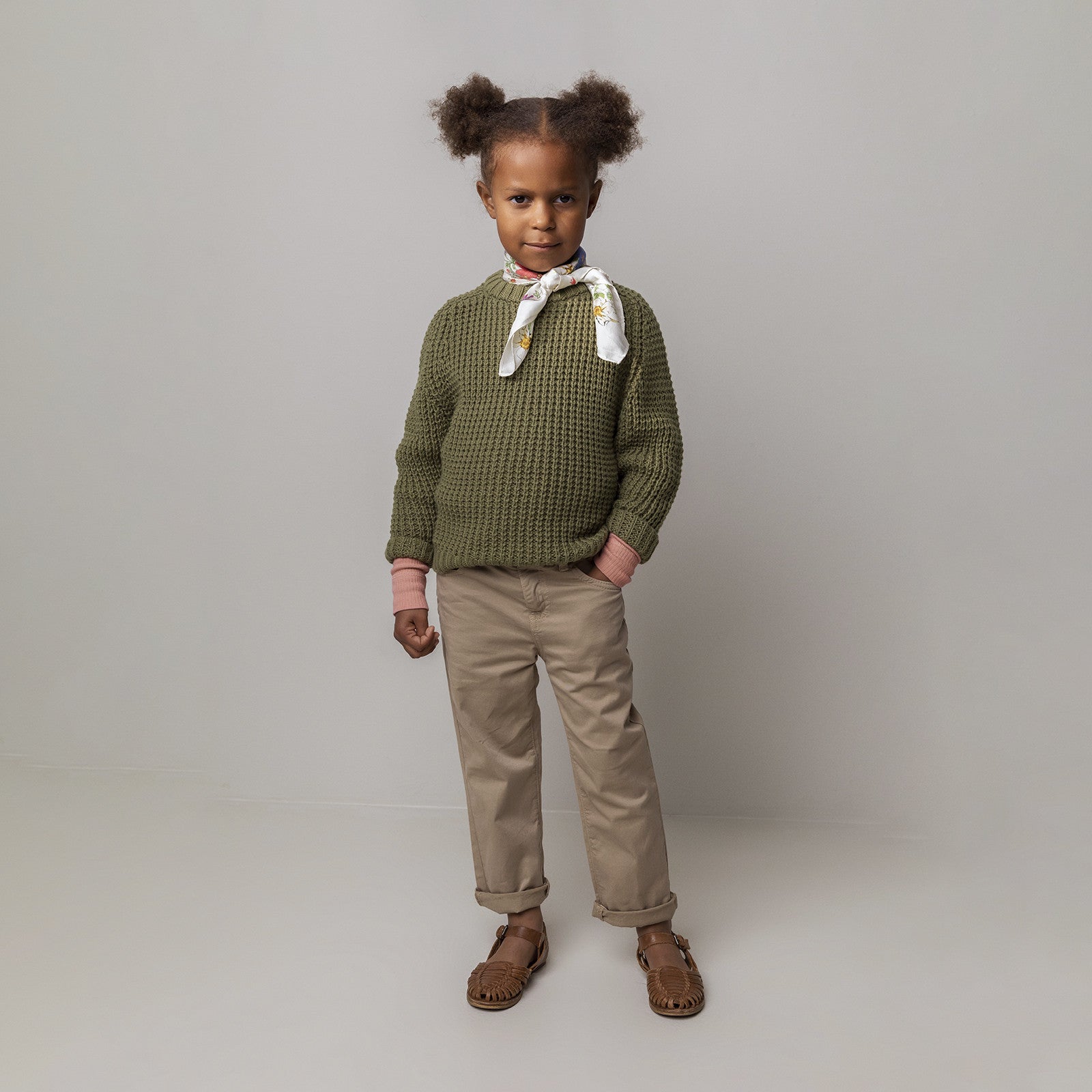 Trousers with side pockets, 2 pockets on the back and belt loops. The trousers have an elastic waistband that can be adjusted on the inside.