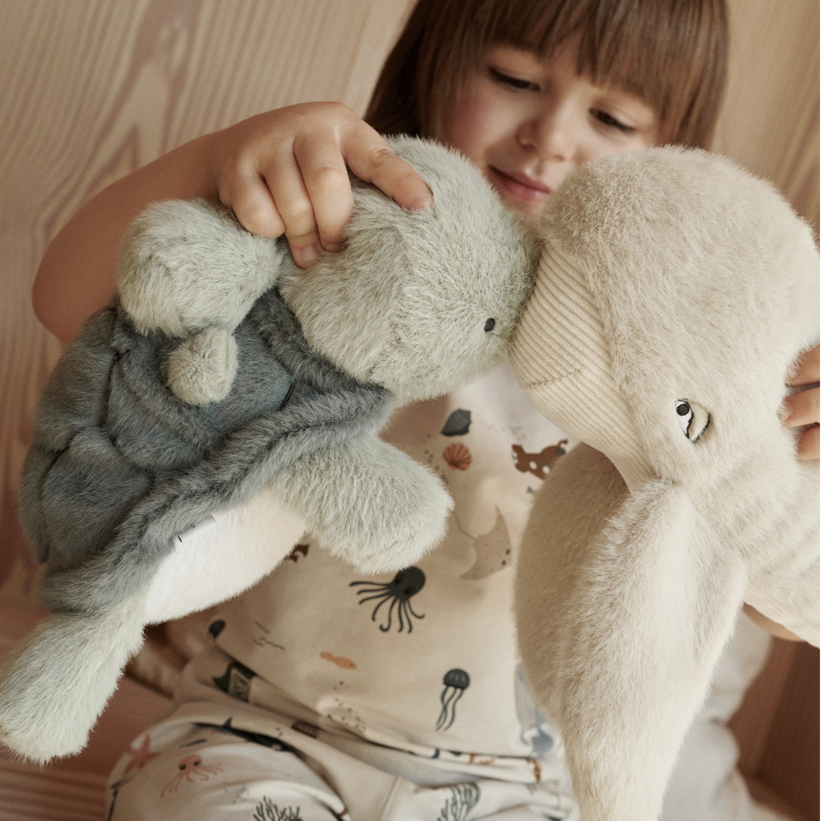 The Liewood children's pyjamas in the Sea Creature Sandy design turn bedtime into an adventure. Made from soft organic cotton, the short pyjamas offer maximum comfort and are gentle on the skin. The cute sea motif with fish, whales and starfish stimulates the imagination and will delight children. The set consists of a short-sleeved top and matching shorts, perfect for warm nights. The elasticated waistband ensures a comfortable fit and freedom of movement. These pyjamas are not only functional, but also sustainable and durable - ideal for little explorers who want to combine comfort and fun.