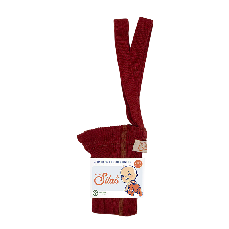 The red tights from Silly Silas are a blaze of color for grey days. Their intense red evokes memories of autumn leaves, red berries and cozy afternoons. Made from 100% organic cotton, they offer a comfortably stretchy fit, ideal for active children's legs. The retro-style straps provide support and make them easy to put on. Whether paired with a knitted sweater, bodysuit or jumpsuit, Maple Leaf will keep your child in a good mood and feeling warm. The textured ribbed fabric is breathable, durable and gentle on the skin. These tights will brighten up every day and accompany your child through adventures, rest periods and first steps. A garment that not only protects, but also inspires - with color, comfort and character.