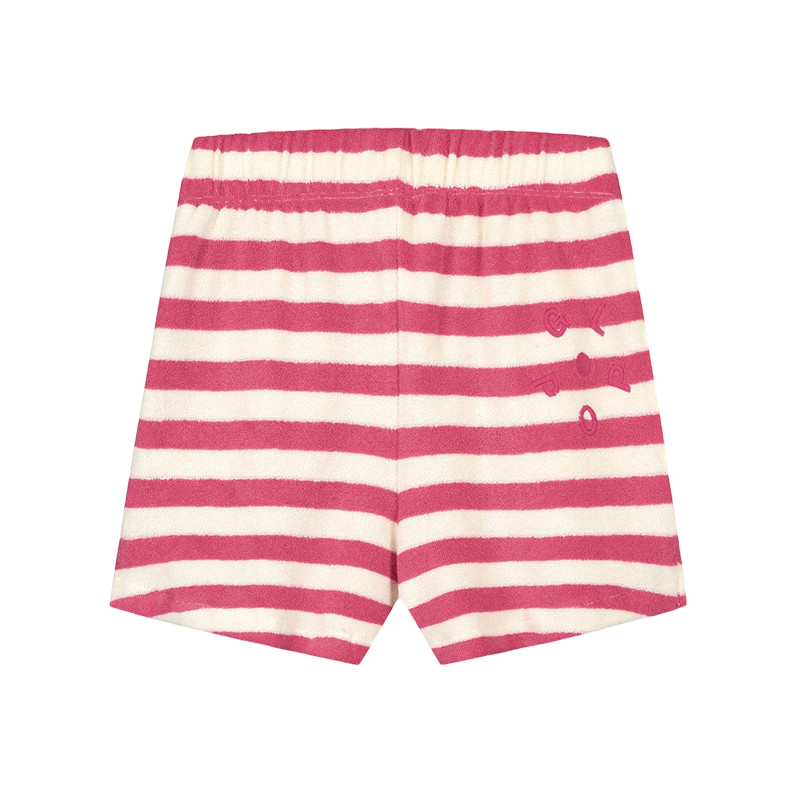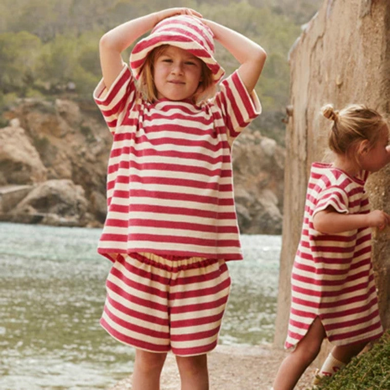 With their cheerful cherry red and cream stripe pattern, the Pop Terry Cherry Cream children's shorts from Gray Label bring summery lightness to the wardrobe. The soft terry fabric made from high-quality organic cotton is comfortable to wear and has a loose fit - ideal for active days. The elasticated waistband offers optimum comfort, whether you're playing, relaxing or exploring the world. Combine these summery shorts with the Pop Terry Cherry Cream T-shirt for a harmonious look. Perfect for little adventurers who appreciate style and sustainability.
