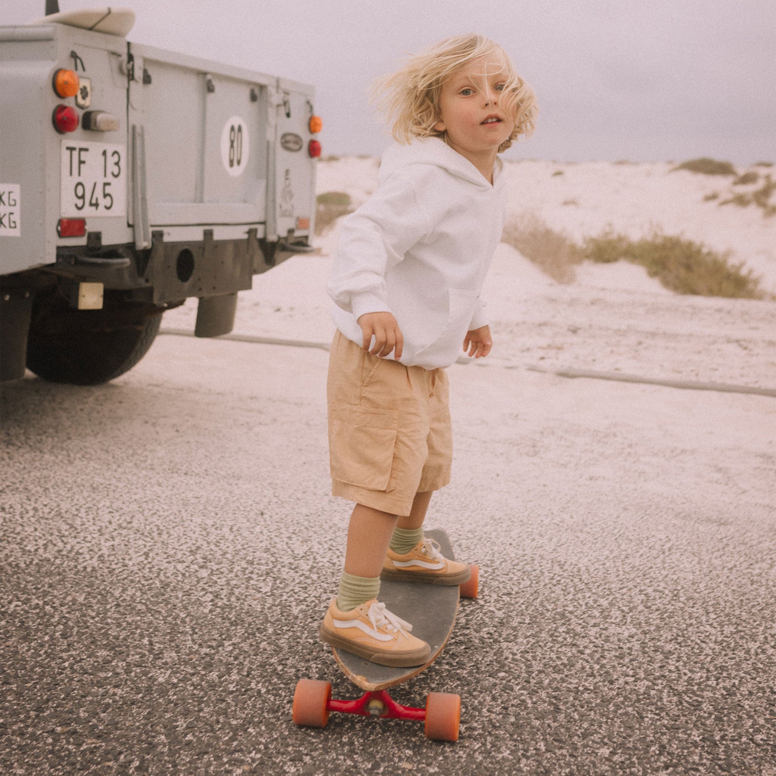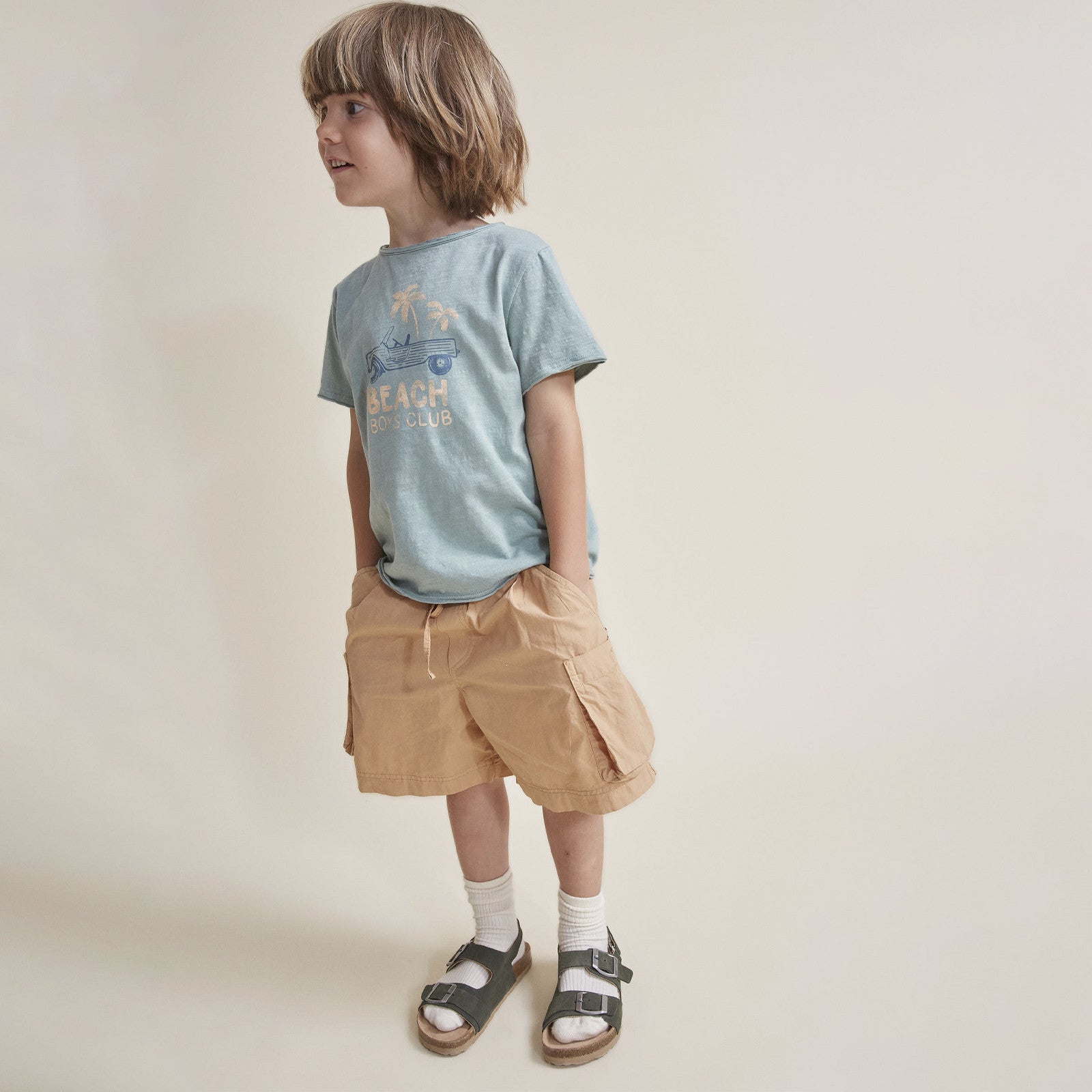 The warm honey color adds a sunny, natural touch to any outfit and can be combined with casual T-shirts, lightweight tops or summery blouses. Whether playing in the park, at the beach or on a family outing, these shorts will keep children comfortable throughout the day and offer plenty of freedom of movement.