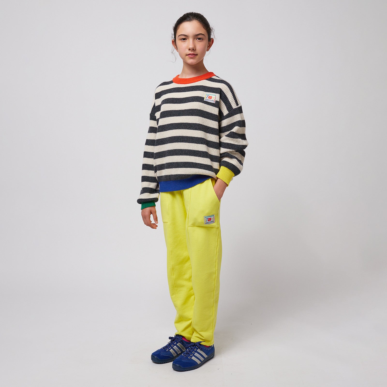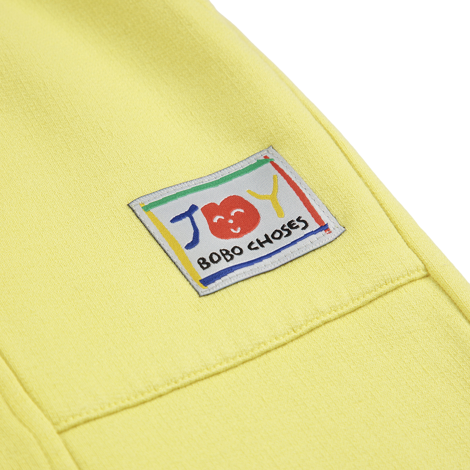 With their cheerful yellow shade and charming smile print, the Smiling Light Yellow jogging bottoms from Bobo Choses bring a good mood to any wardrobe. Made from sustainable, soft and breathable material, they are extremely comfortable to wear - ideal for active children who want to move freely. The elasticated waistband and cuffs ensure a perfect fit that stays comfortable all day long. Whether for outdoor adventures, relaxing hours indoors or creative playtime, these tracksuit bottoms will accompany children in style and comfort. They are a vibrant expression of joie de vivre and inspire them to discover the world with a smile every day. A perfect garment for parents who value environmental awareness and design. Also available in red.