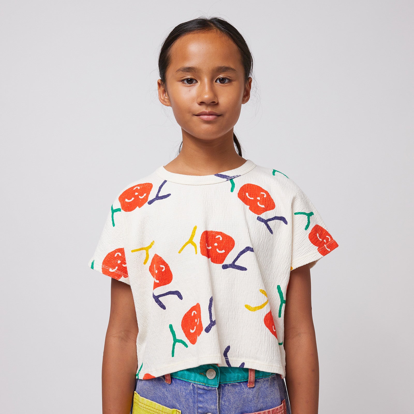 With the Smiling All Over T-shirt from Bobo Choses, children wear joy on their clothes. The cheerful print is reminiscent of sunny days, carefree laughter and the little wonders of everyday life. Perfect for creative minds who want to express themselves freely and adventurers who are always on a journey of discovery. The cropped design makes it ideal for hot days or as a fashionable layering piece. Bobo Choses doesn't just create fashion, it creates little stories that inspire children and make the world a little brighter.