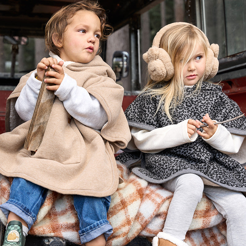 The Cloby teddy poncho in leopard gray is a real eye-catcher for the cold season and sets fashionable accents. The soft inside made of cuddly teddy fabric keeps your baby warm and comfortable to wear. The hood reliably protects the head from wind and weather, while the stylish leopard pattern creates a trendy look that will enhance any winter outfit. Whether for a walk in the park, a family outing or as a cozy throw in the baby carriage - this poncho combines functionality and style in a special way. Ideal for little adventurers who want to be fashionable even in the cold season. The poncho is also an ideal choice for keeping your baby warm and comfortable during a car journey.