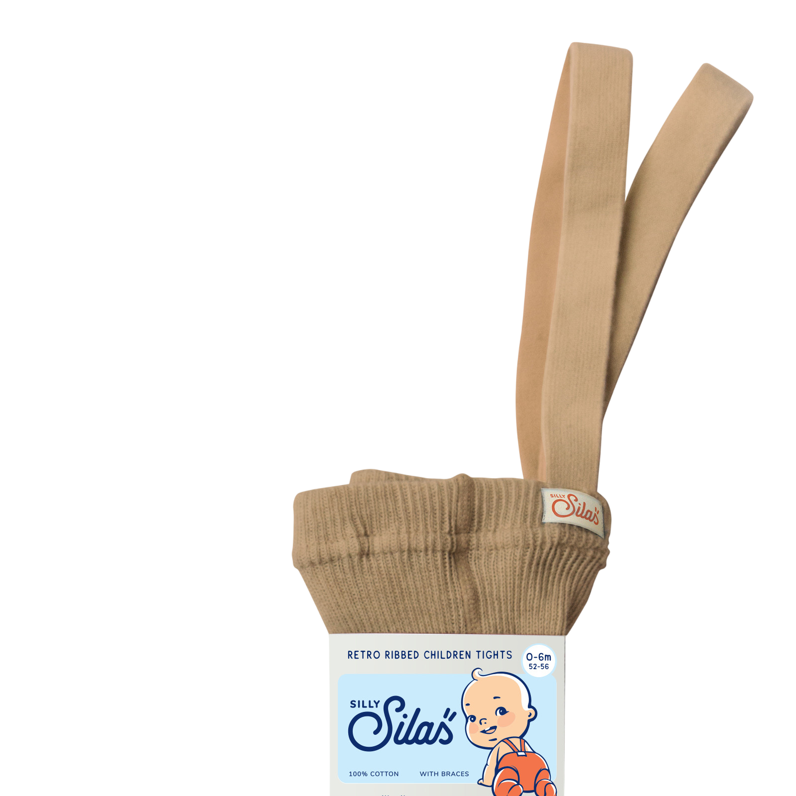 The cute Silly Silas tights in the color Light Brown feel like a hug from the past - soft, warm and full of security. The soft cotton knit provides pleasant warmth on cold days and is gentle on children's sensitive skin. The classic straps guarantee a secure fit, whether in the playground, at nap time or out and about in the baby carriage. The warm natural shade is reminiscent of toasted oatmeal and can be combined in a variety of ways - with natural white, dark green or other natural shades. These tights are ideal for families who value functionality, comfort and a harmonious sense of color. Whether outdoors or indoors - they offer your child warmth, style and freedom of movement.