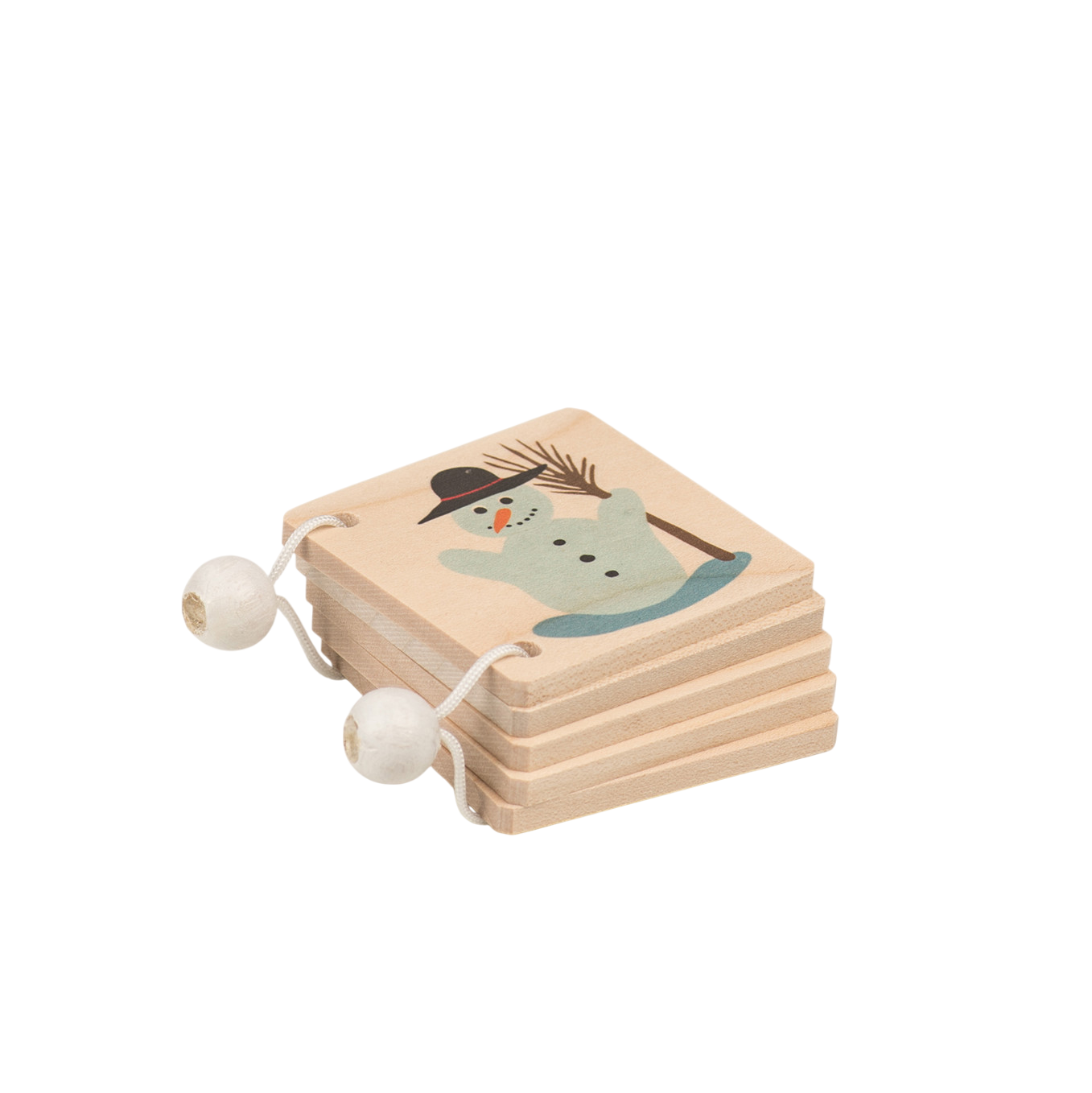 The "Winter" wooden booklet from Kiener brings the magic of cold days into little hands. Snowmen, snowflakes and wintry scenes glisten on the wooden cards, which children look at with curiosity and name. As they turn the pages, they feel the smooth wood, learn new words and make up stories about sleigh rides, snowball fights and starry nights. You can read the book while waiting for the first snow, use it as an evening ritual or use it at nursery to explain the seasons. You can sing winter songs together, continue animal stories or draw your own pictures. Each page evokes images: the smell of cinnamon, the crunch of snow, the glow of a clear sky. Handmade in Switzerland, Kiener combines sensory experiences, imagination and language to create a lasting companion that puts winter magic into little hands.