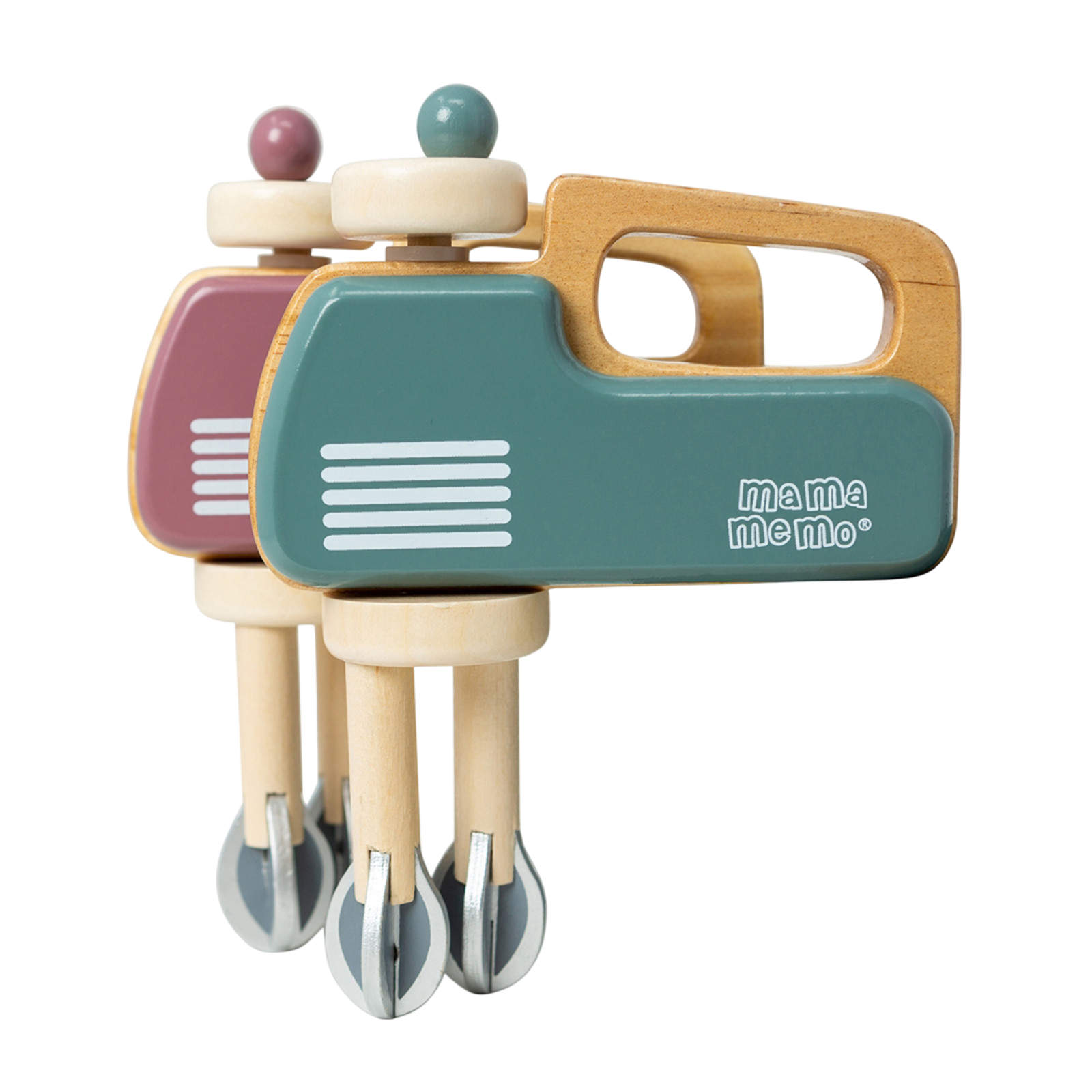 Le batteur à main Mamamemo d'un vert émeraude élégant donne du peps à toutes les cuisines ludiques. Les petits pâtissiers peuvent préparer leurs gâteaux ou biscuits préférés avec les fouets mobiles. Le design authentique du batteur invite à des aventures pâtissières pleines de fantaisie, au cours desquelles la motricité fine et la créativité sont stimulées de manière ludique. Les matériaux robustes en bois de qualité supérieure garantissent une longue durée de vie et un jeu sûr. Que ce soit dans la cuisine de jeu ou lors d'un concours de pâtisserie imaginaire, ce batteur à main est un outil indispensable. Les enfants apprennent ainsi de manière ludique à utiliser les ustensiles de cuisine et se plongent dans le monde de la pâtisserie. Un accessoire élégant et pédagogique qui ravira aussi bien les enfants que les parents.
