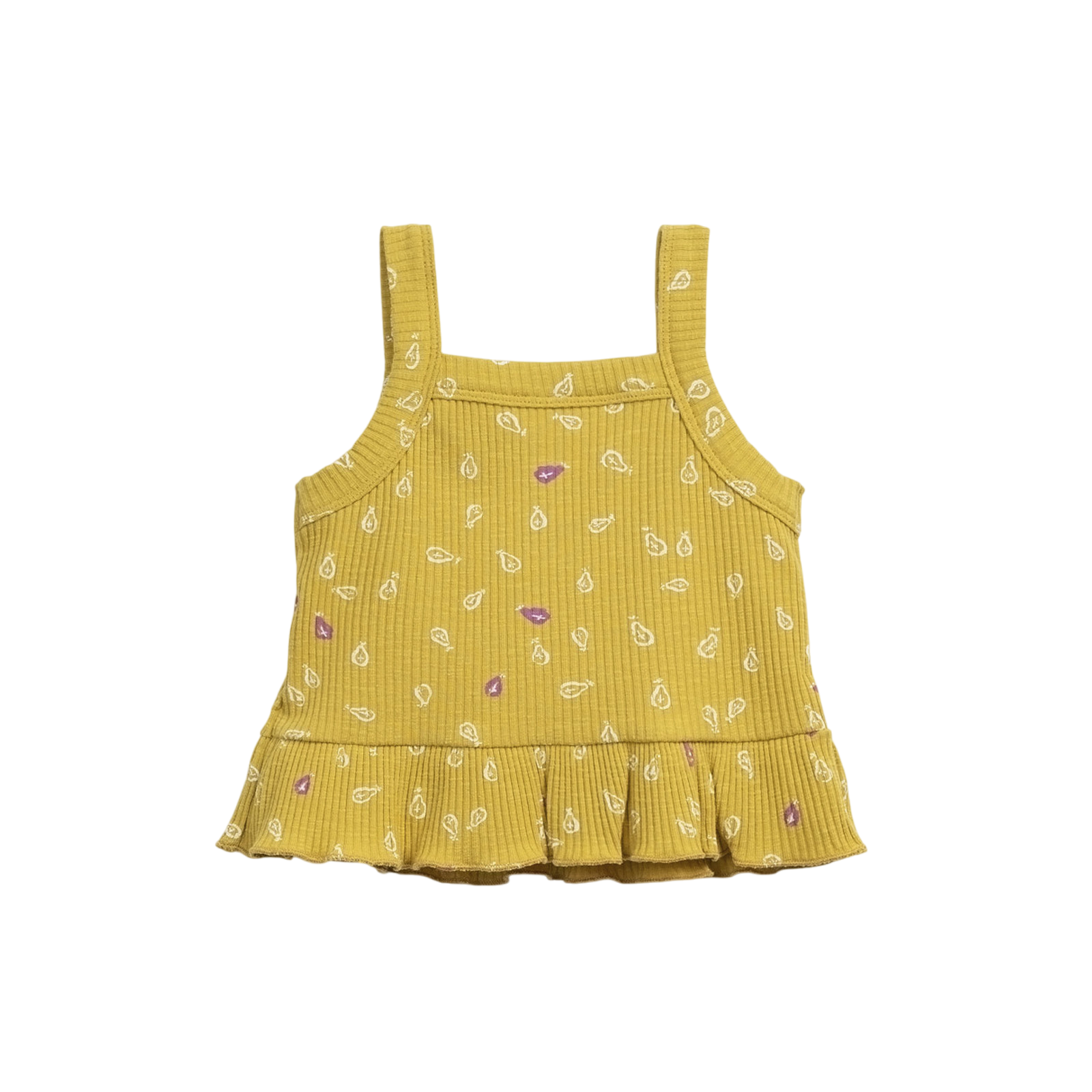 Le top à bretelles Play Up Esteva est un choix charmant pour les chaudes journées d'été. Fabriqué en coton bio de qualité supérieure, il enveloppe la peau d'une agréable sensation et assure un confort optimal grâce à sa structure aérée - que ce soit en jouant dans le jardin ou en découvrant de nouvelles aventures. L'adorable imprimé en forme de poire sur un jaune moutarde chaud confère au top un rayonnement joyeux et naturel, inspiré de la beauté de la nature. Les fines bretelles offrent une liberté de mouvement suffisante, tandis que les délicats volants à l'ourlet apportent une touche espiègle. La patte de boutonnage bien pensée sur le devant facilite l'habillage et le déshabillage, ce qui rend le haut particulièrement pratique au quotidien. Qu'il soit combiné avec un pantalon court pour les journées chaudes ou sous un cardigan pour les soirées plus fraîches, le top Esteva est une véritable pièce de bien-être qui allie parfaitement style et commodité.