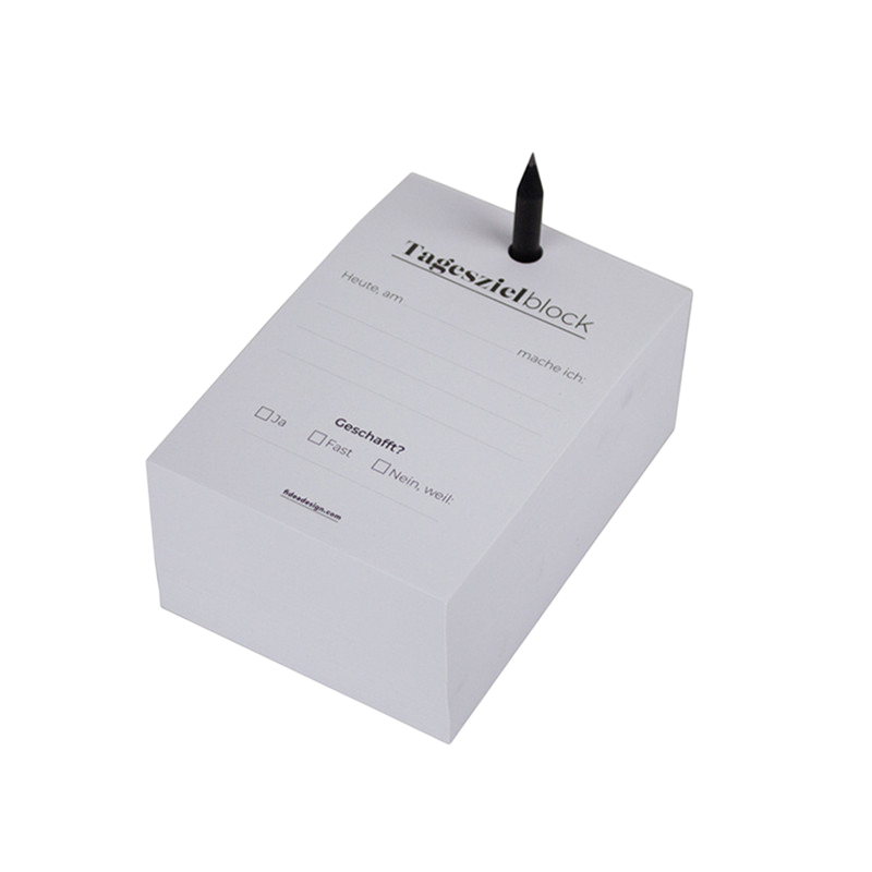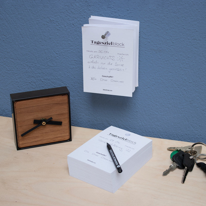 Wieso sein Bullet-Journal nicht sichtbar machen? Mit dem Abreissblock 365 Tagesziele kannst du täglich drei Aspekte festhalten, die du erreichen resp, erledigen möchtest. Mit dem mitgelieferten Nagel hängst du sie gut sichtbar auf und streichst sie ab, sobald sie umgesetzt sind. Es gibt kein besseres Gefühl!