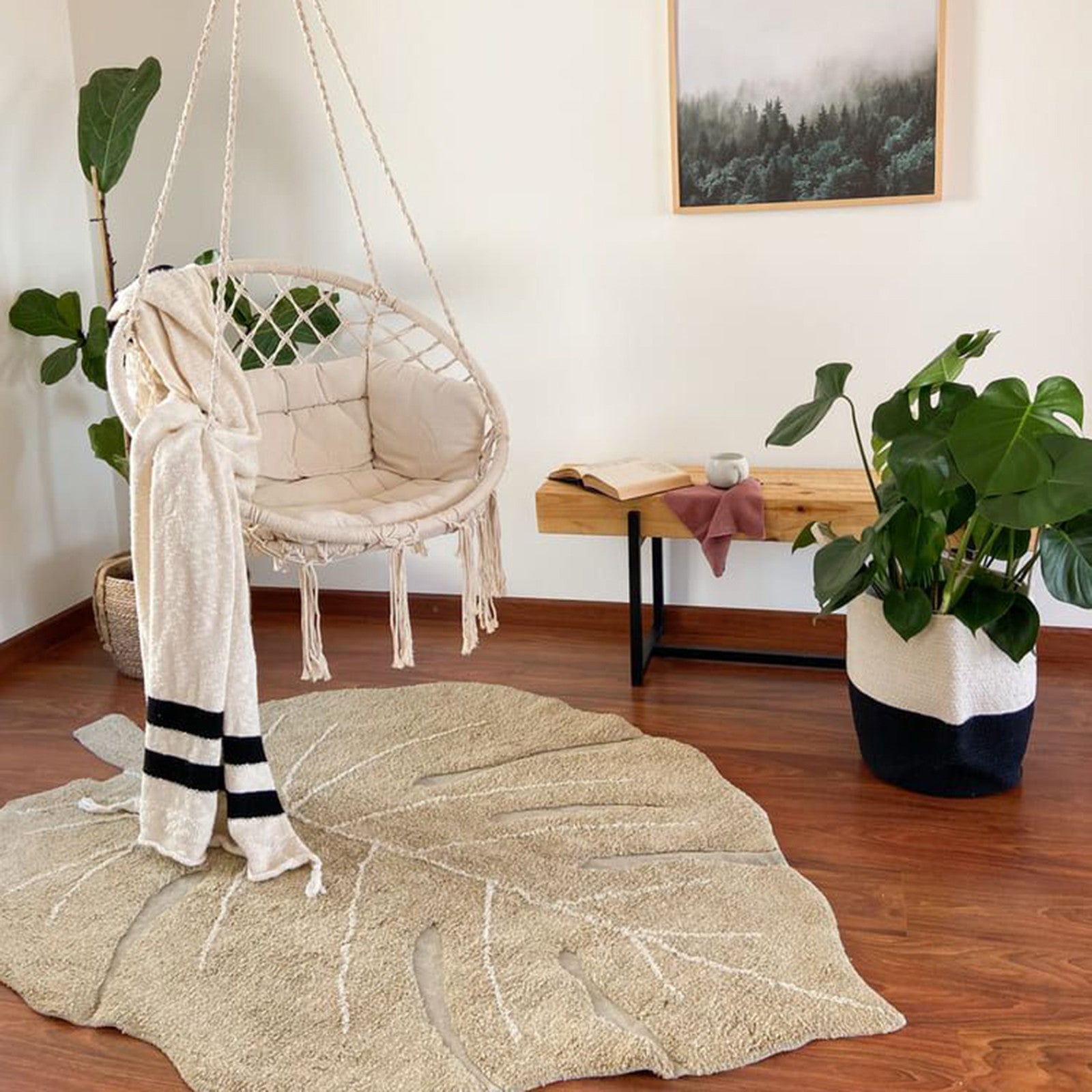 Geflochtener zweifarbiger Baumwollkorb mit Griffen, in Natur und Schwarz