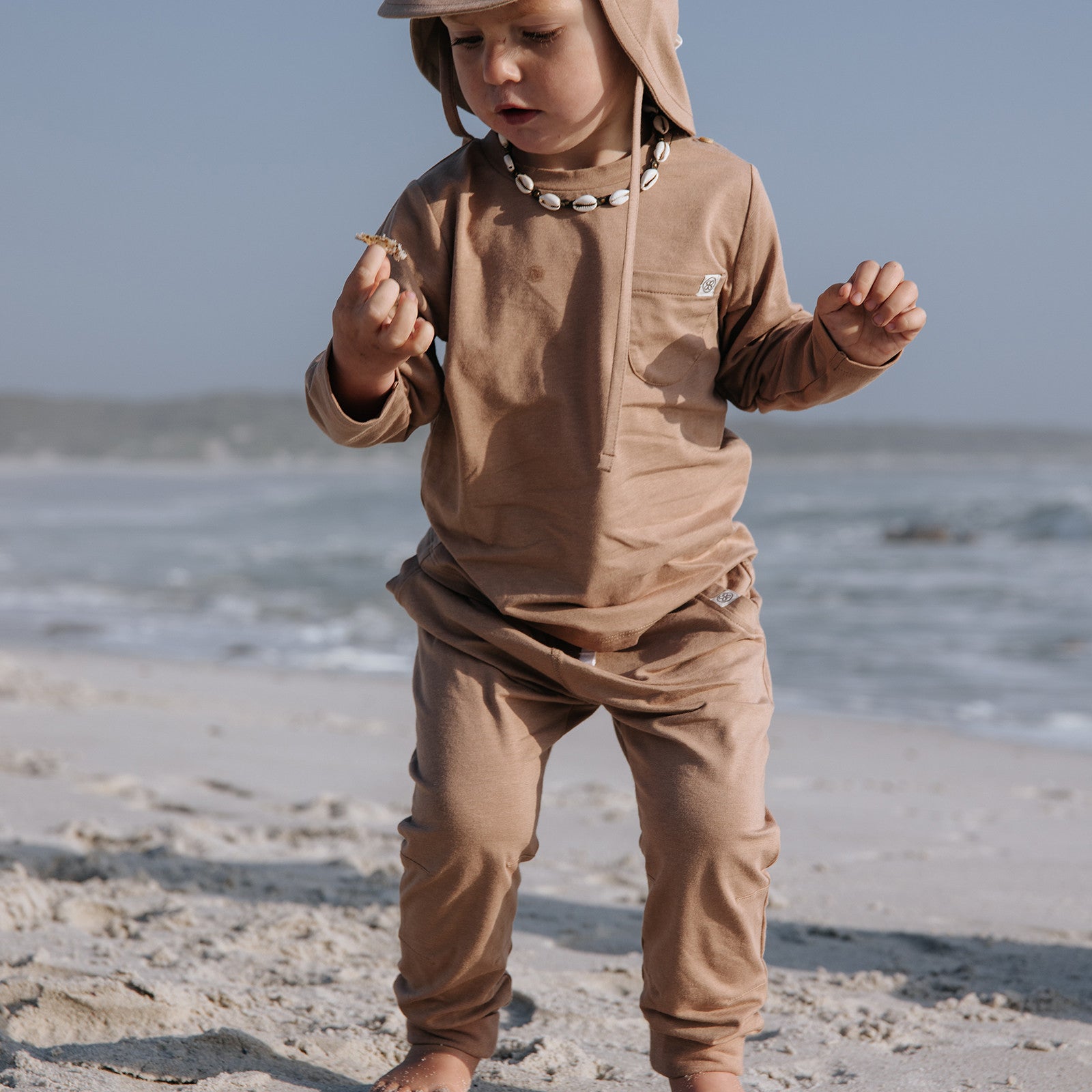 Die Cloby Jogginghose in Peanut sind die perfekte Wahl für kleine Abenteurer, die jeden Tag voller Neugier die Welt entdecken. Der flexible Bund sorgt für eine bequeme Passform, während die praktischen Taschen zusätzlichen Stauraum für kleine Schätze bieten. Hergestellt aus hochwertiger Bio-Baumwolle, bieten sie nicht nur ein angenehmes Tragegefühl, sondern sind auch robust genug, um jedes Abenteuer mitzumachen. Der integrierte UV-Schutz 50+ macht sie ideal für sorgloses Spielen im Freien, selbst an sonnigen Tagen. Diese Joggerpants sind ein treuer Begleiter für Babys, die Komfort und Funktionalität in einem stylischen Design brauchen.