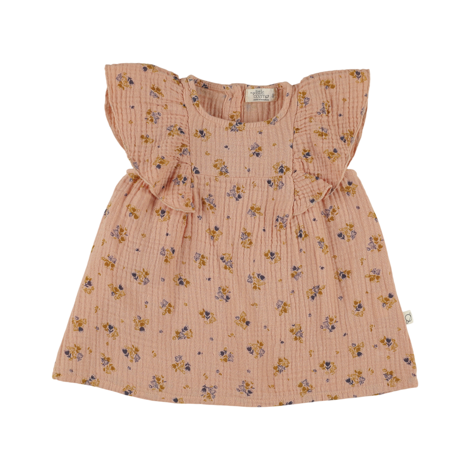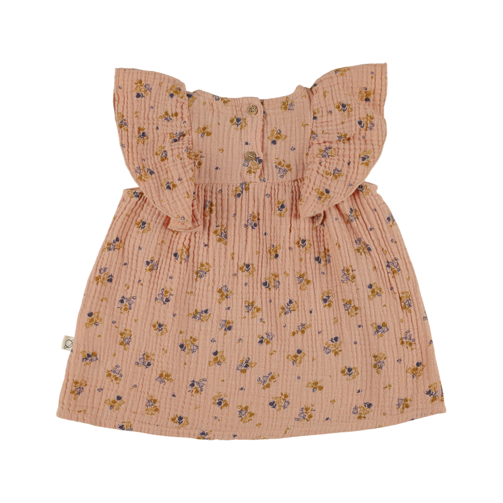 Dieses Kleid aus weicher, hauchdünner Baumwolle mit hübschem Blumendruck hat einen Rundhalsausschnitt und ein gerafftes Oberteil. Das Kleid hat einen Knopfverschluss am Rücken.