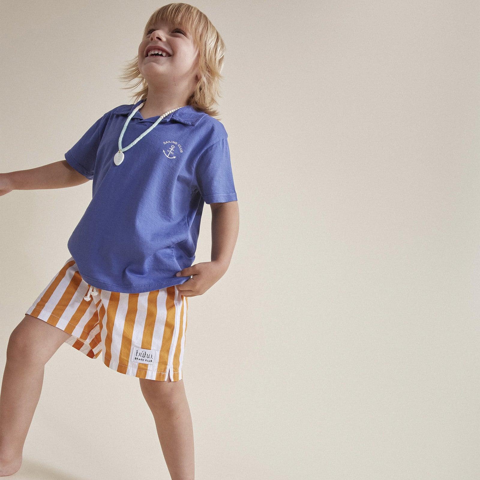 Sommer bedeutet Freiheit – barfuss durch den warmen Sand rennen, in die Wellen springen und unbeschwert den Tag geniessen. Die gestreiften Jungen Badeshorts von Búho sind genau dafür gemacht. Die frischen Orange-Weiss-Streifen versprühen pure Sommerlaune, während der leichte, schnell trocknende Stoff für ein angenehmes Tragegefühl sorgt. Der elastische Bund mit Kordelzug bietet einen sicheren Sitz, sodass sich kleine Wasserratten frei bewegen können – sei es beim ersten Tauchgang im See oder beim Bauen von Sandburgen. Langlebig, bequem und nachhaltig produziert, ist diese Kinder Badehose ein unverzichtbarer Begleiter für jedes Sommerabenteuer. Kombiniere sie mit einem luftigen Shirt oder trage sie einfach solo für ein perfektes Beach-Outfit.
