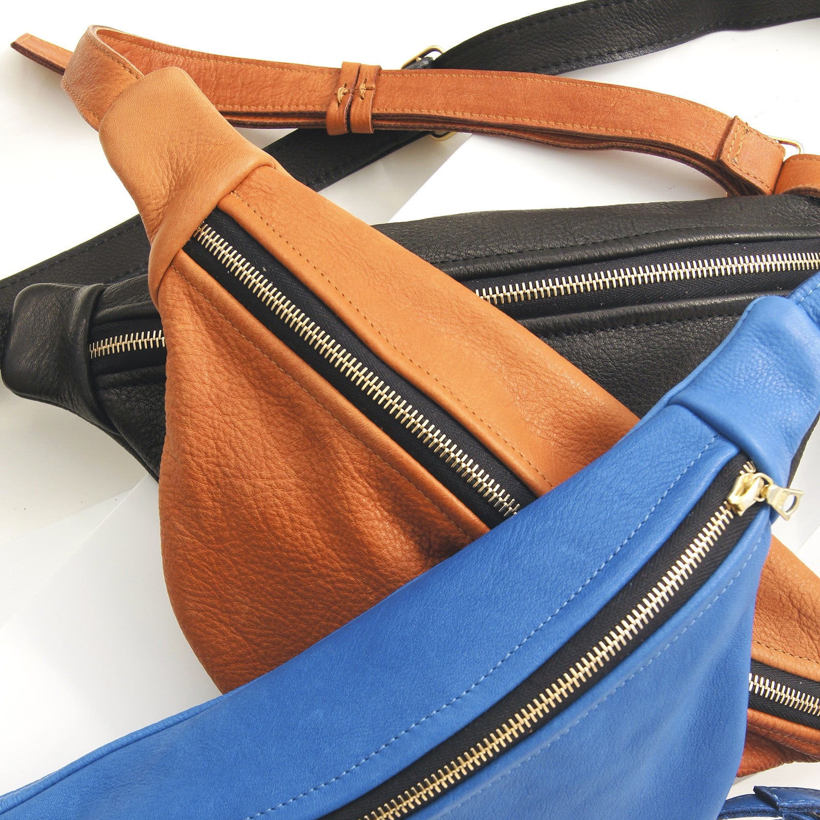 Bananen Tasche aus weichem Nappa Leder. Die Tasche kann über der Schulter oder um die Hüfte getragen werden. Der Gurt ist bis zu einer Länge von 100 cm verstellbar. Die Tasche wird mit einem Reissverschluss geschlossen und ist innen mit Bio Baumwolle gefüttert. Dieses Produkt wird auf Bestellung speziell für dich angefertigt.