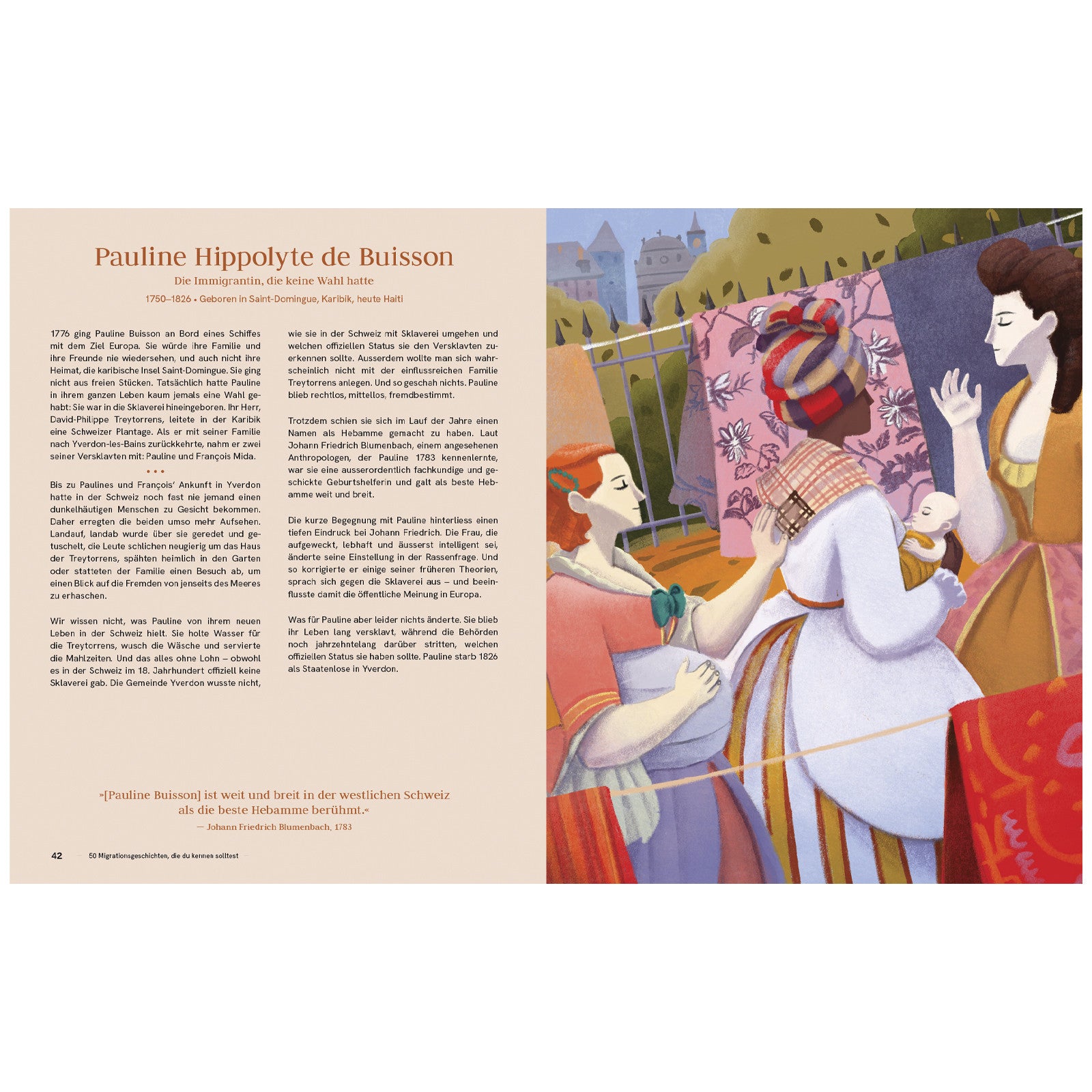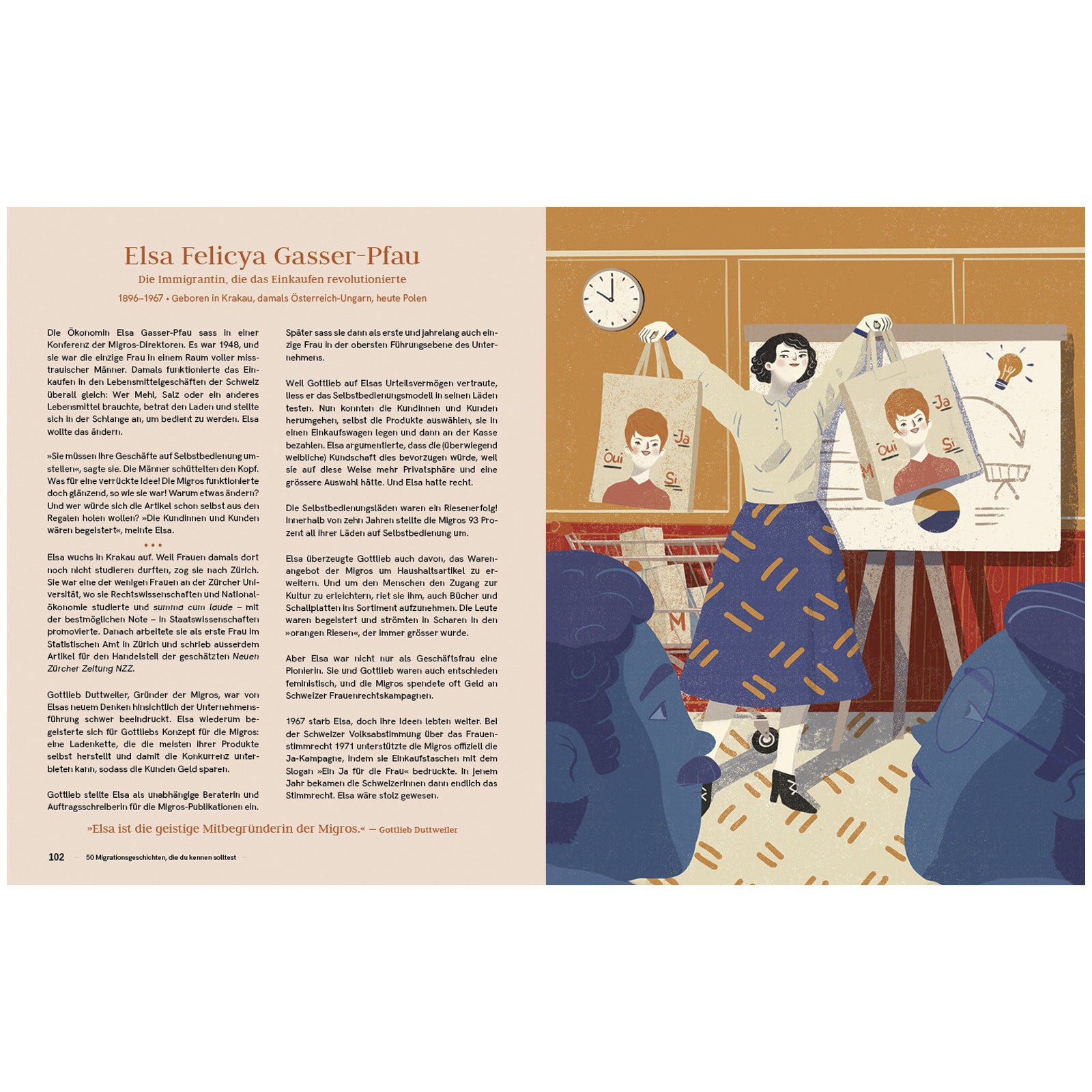 Dieses Buch erkundet die vielfältigen Leistungen und Stärken von Immigrantinnen und Immigranten in der Schweiz. Die 50 Biografien auf je einer Buchseite geben den Leserinnen und Lesern einen Einblick in das Leben von fünfzig klischeebrechenden Immigrantinnen und Immigranten - sowohl aus der Vergangenheit als auch aus der Gegenwart - die inspirieren und faszinieren. Jede Biografie wird durch eine einzigartige Farbillustration der Schweizer Illustratorin Mireille Lachausse vervollständigt.