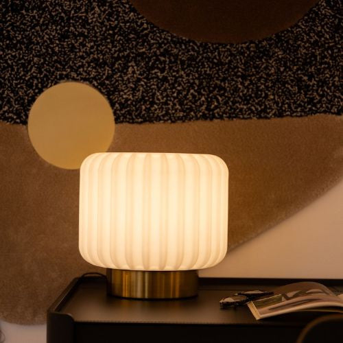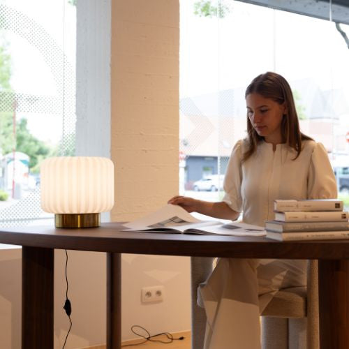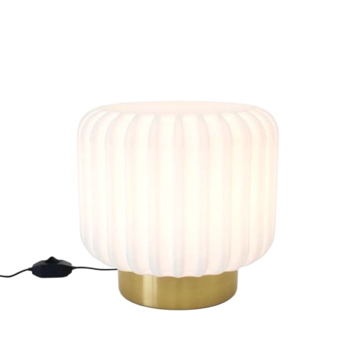 Die Dentelles Wide XL Lampe mit Kabel und Dimmer - Goldener Fuss von Atelier Pierre verbindet skulpturale Eleganz mit funktionaler Beleuchtung. Ihr charakteristisches, geriffeltes Design erzeugt ein weiches, diffuses Licht, das eine gemütliche Atmosphäre schafft. Der goldene Fuss verleiht ihr eine edle Note und macht sie zu einem luxuriösen Blickfang in jedem Raum. Dank der integrierten Dimmfunktion lässt sich die Lichtintensität individuell anpassen – perfekt für entspannte Abende im Wohnzimmer oder sanftes Licht im Schlafzimmer. Ihr zeitloses Design harmoniert mit modernen und klassischen Einrichtungsstilen gleichermassen und setzt stilvolle Akzente auf Sideboards oder Beistelltischen. Gefertigt aus hochwertigen Materialien, bietet sie nicht nur ästhetische Raffinesse, sondern auch Langlebigkeit und Qualität.